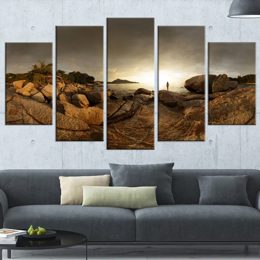 "Brown Rocky Forest Panorama" Landscape Wall Art Canvas Print, 5 Panels, 60"x32"