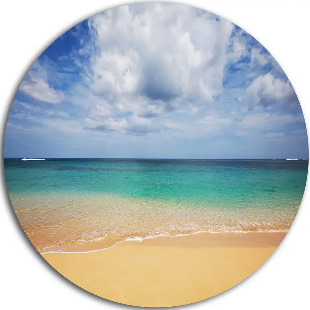 Bring Contemporary Abstraction to your home with this large Circle Metal wall art. This Brown Starfish on Caribbean Beach Metal Artwork makes it the focal point of any room or office. - White Gloss Coating ensures colors are extra vibrant with light reflection.- Aluminum grade Sheet Metal with 1 inch mounting frame on the back giving the illusion that the artwork is floating on the wall..- Mounting Brackets are included along with instructions.- High Quality Digital images are created directly into a glossy aluminum panel producing a stunning and captivating print into the glossy finish of the metal.- Water, Fire and Scratch resistant HD Aluminum panels.- Looks better than any photo paper and guaranteed to last at least 20 years- Easy to clean with a microfiber cloth. Colors are far superior to regular Canvas Art. - Easy to Hang