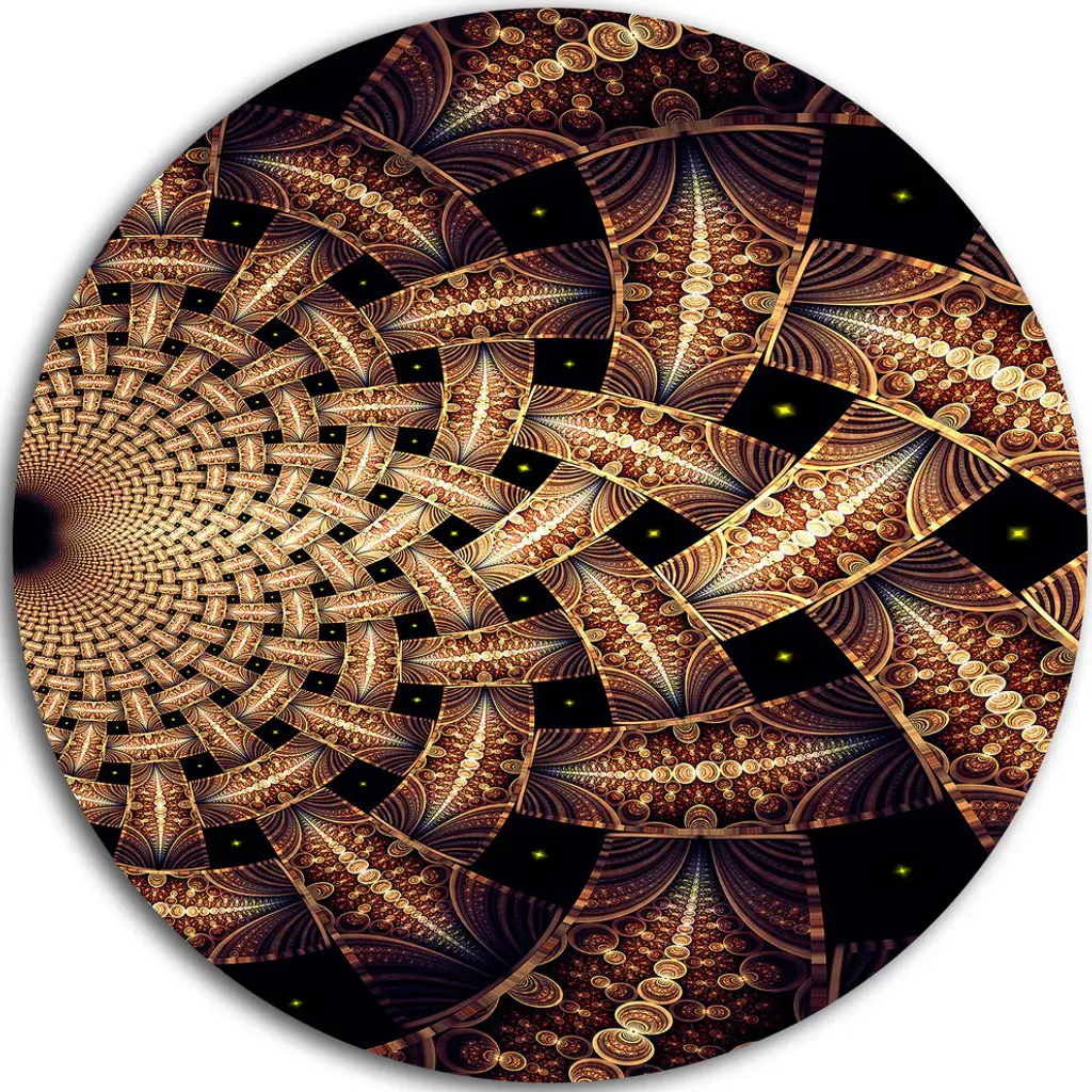 Bring Contemporary Abstraction to your home with this large Circle Metal wall art. This Brown Symmetrical Fractal Flower Design Metal Artwork makes it the focal point of any room or office. - White Gloss Coating ensures colors are extra vibrant with light reflection.- Aluminum grade Sheet Metal with 1 inch mounting frame on the back giving the illusion that the artwork is floating on the wall..- Mounting Brackets are included along with instructions.- High Quality Digital images are created directly into a glossy aluminum panel producing a stunning and captivating print into the glossy finish of the metal.- Water, Fire and Scratch resistant HD Aluminum panels.- Looks better than any photo paper and guaranteed to last at least 20 years- Easy to clean with a microfiber cloth. Colors are far superior to regular Canvas Art. - Easy to Hang