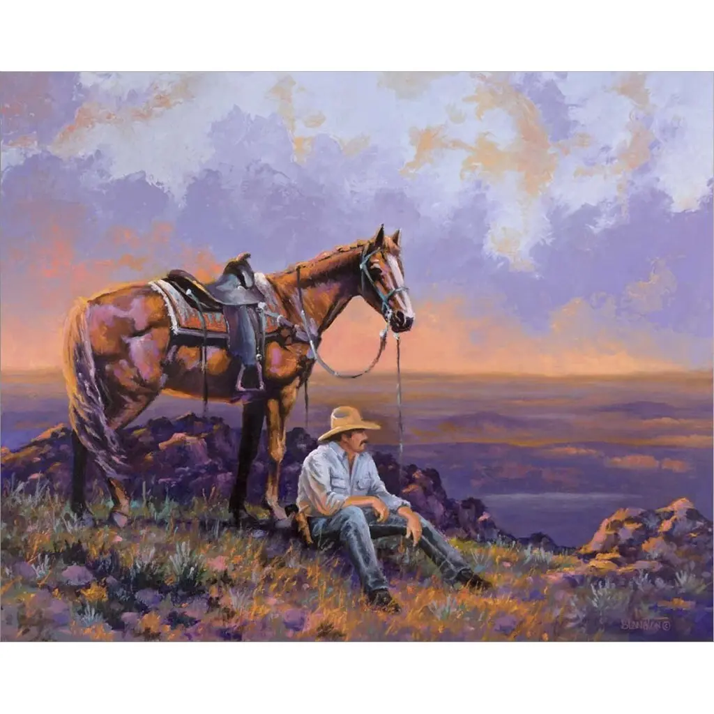 End of Day by Bruce Langton is a high quality piece of framed artwork. The finished size of this piece is 28" x 23". It has a Rustic Weathered Chocolate Brown with Antique Silver Accent frame and is finished with high quality Acrylic Plexiglass. 100% Satisfaction Guaranteed.