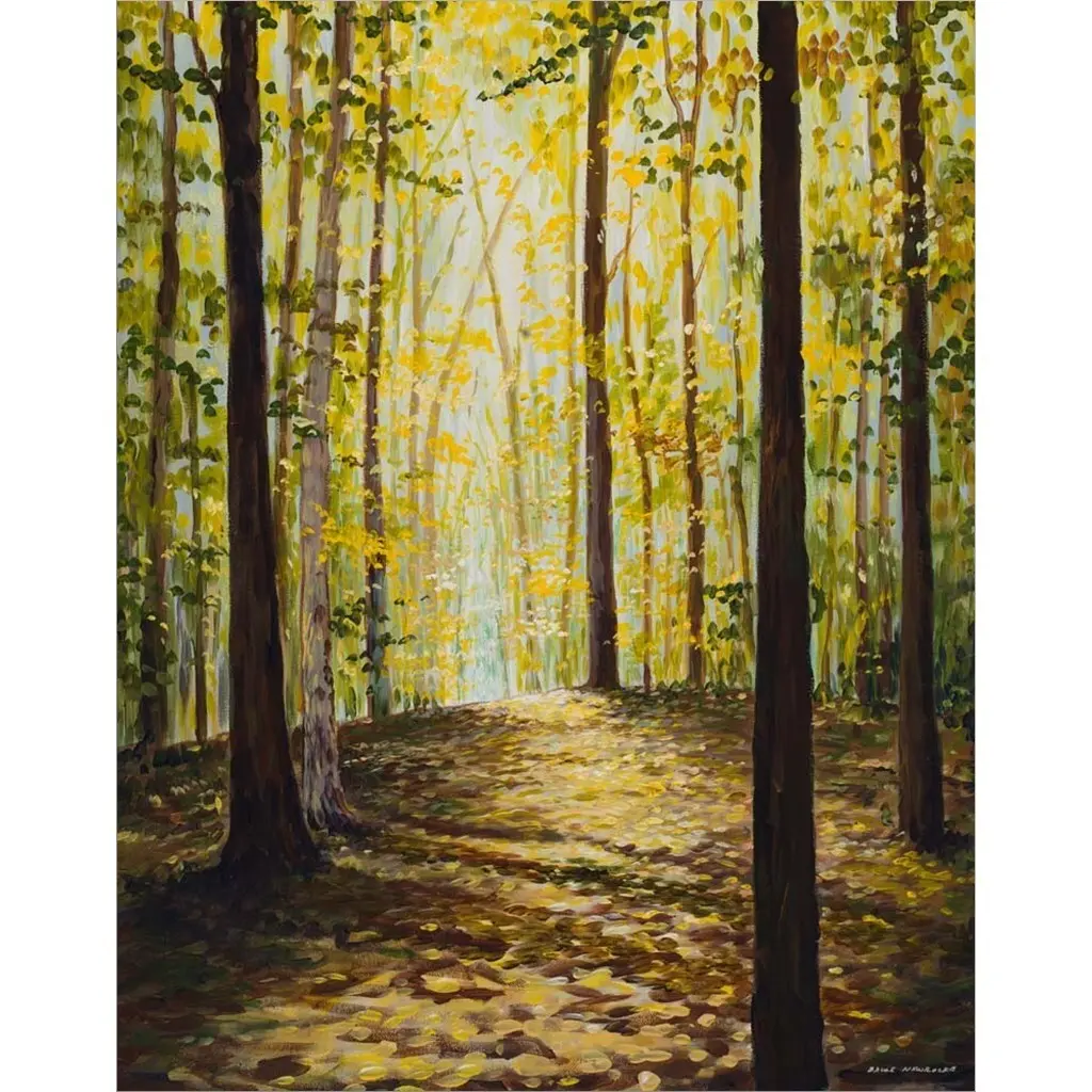 Autumn Forest by Bruce Nawrocke is a high quality piece of framed artwork. The finished size of this piece is 19.5" x 23". It has a Rustic Weathered Chocolate Brown with Antique Silver Accent frame, White mat and is finished with high quality Acrylic Plexiglass. 100% Satisfaction Guaranteed.