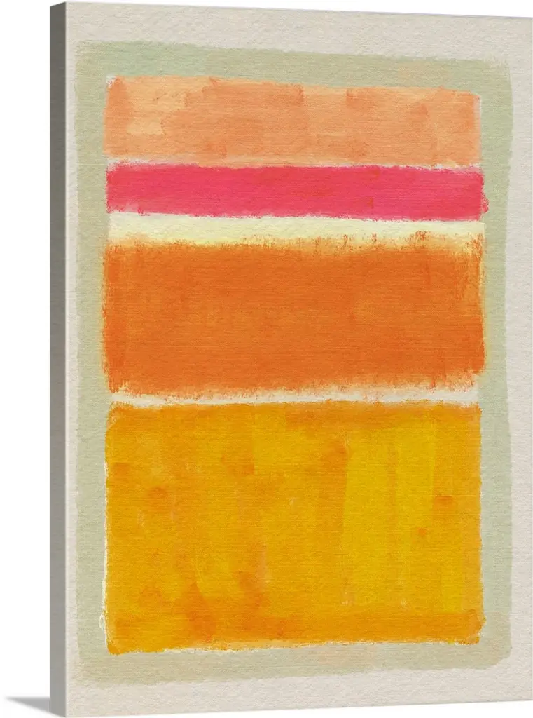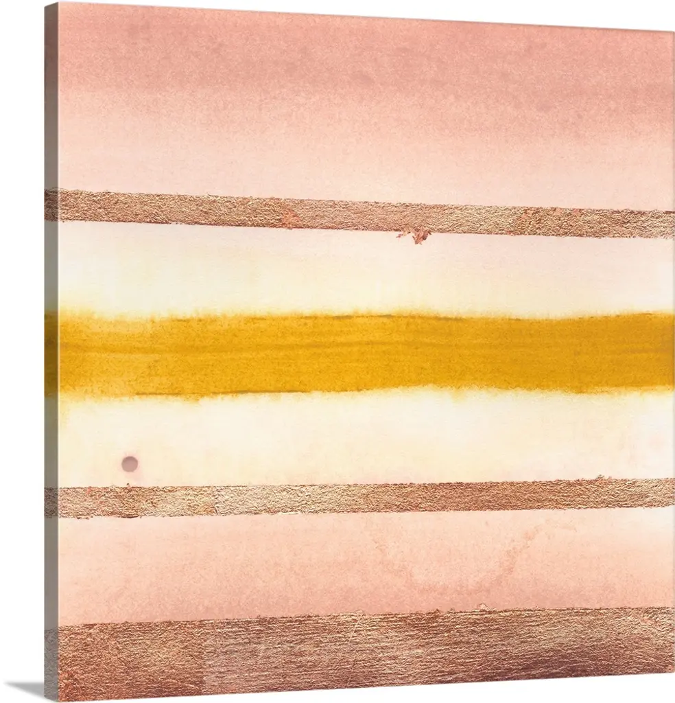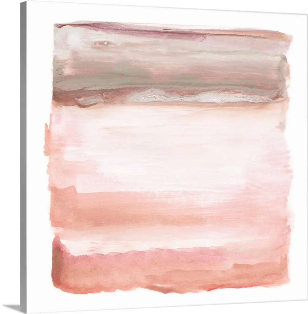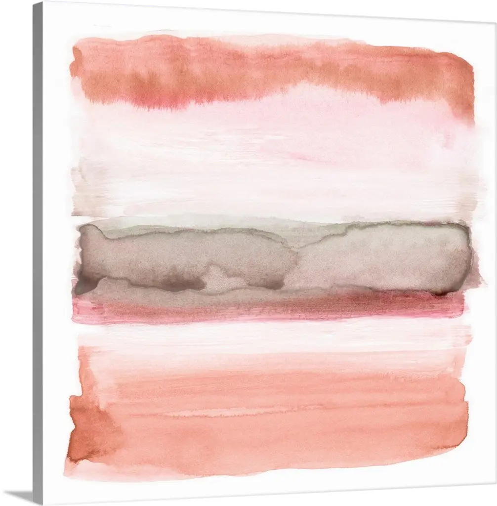 Five horizontal brush strokes stacked on top of each other construct this horizontal abstract contemporary painting.