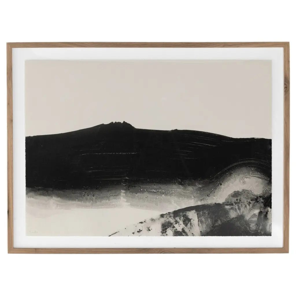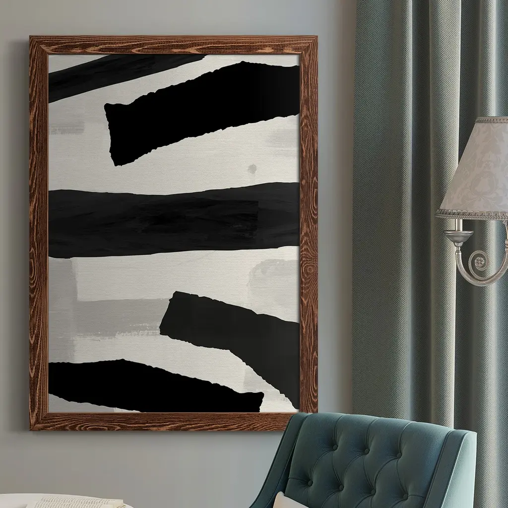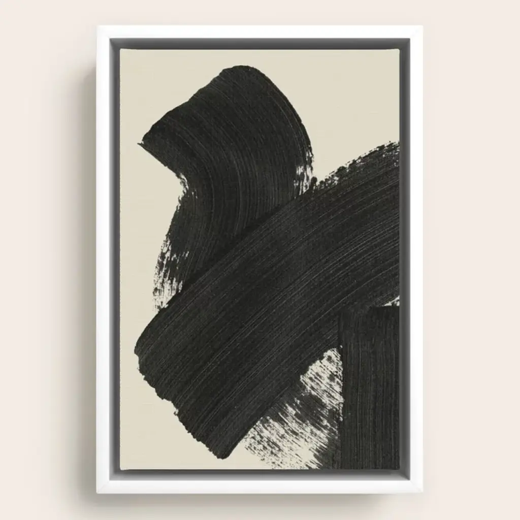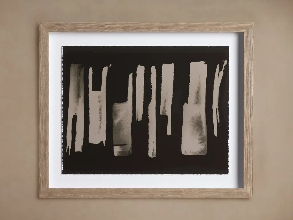 Emphasizing the movement of a paintbrush, this graphic art print elevates your walls with a bold abstract design with subtle dynamism. This reproduction of a watercolor painting by artist Jacques Pilon features a white background with a series of thick, bold lines in black ink. Each of the lines showcases the gradient caused by the brush moving, highlighting the irregularities in the first few strokes of painting. It's printed in the USA on high-quality art paper, and arrives framed and matted for a finished, ready-to-hang design. Wall mounting hardware included.