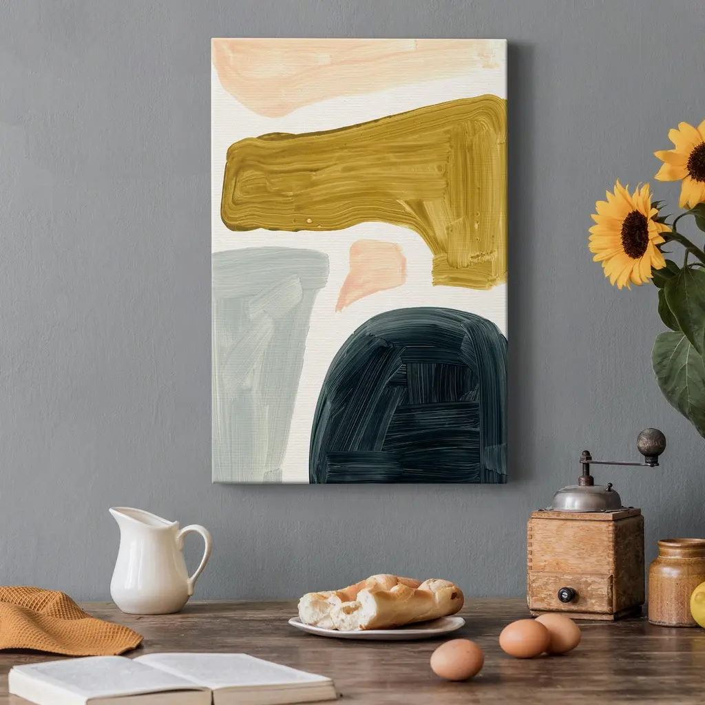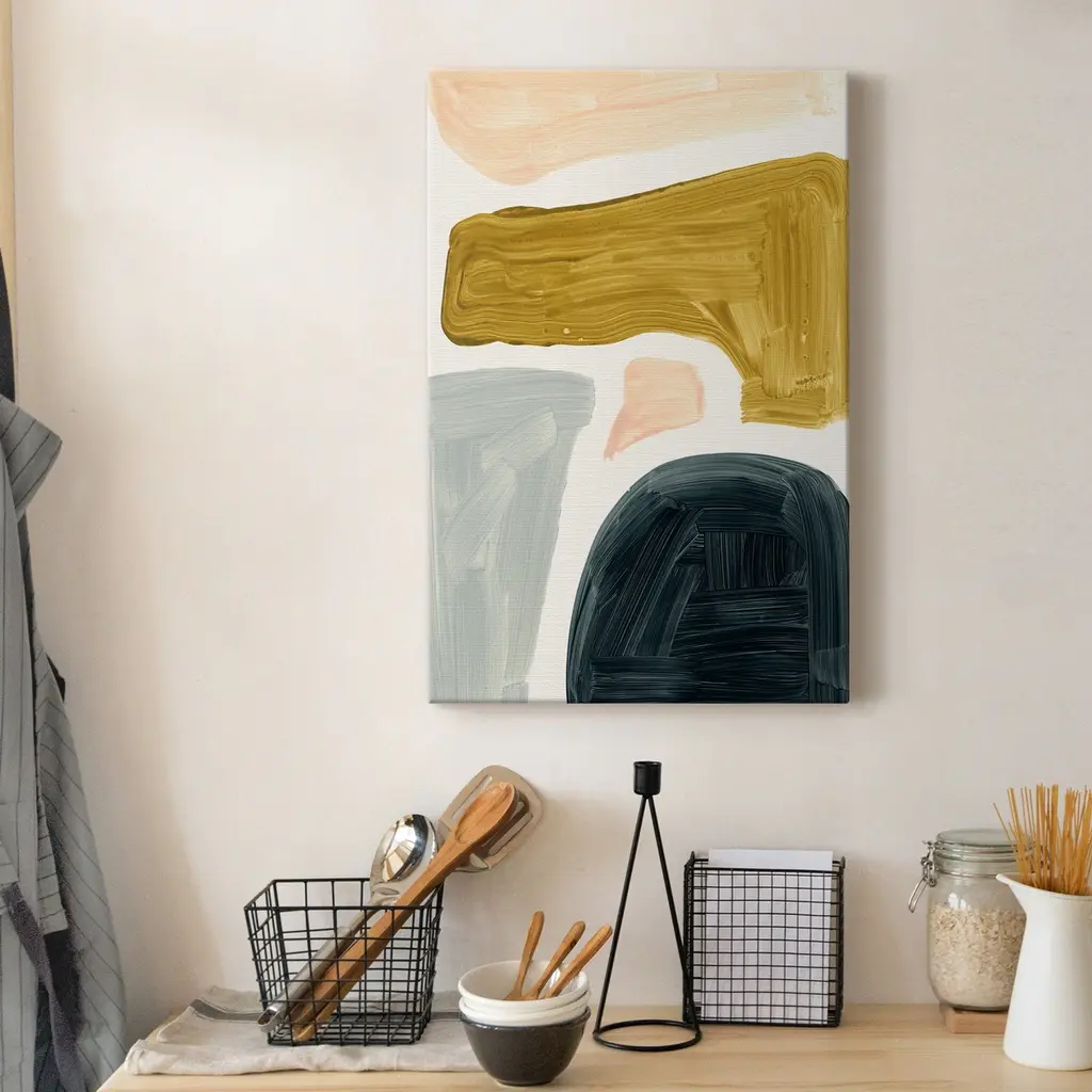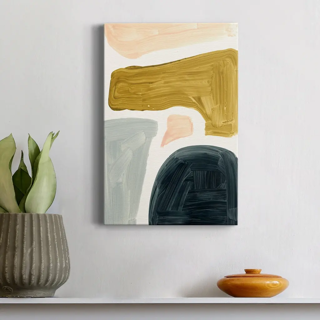 Brushy Shapes II Premium Gallery Wrapped Canvas - Ready to Hang A premium hand stretched gallery wrapped canvas print created to last. Featuring a beveled a solid wood stretcher bar, each piece comes ready to hand 5 SIZES AVAILABLE 8''X12'' - Overall Size 16'X20'' - Overall Size 24''x32'' - Overall Size 30''x40'' - Overall Size 36''x48'' - Overall Size Each piece is made to order. Built to Last Each piece comes ready to hang Solid wood stretcher Fade and Water resistant Made domestically