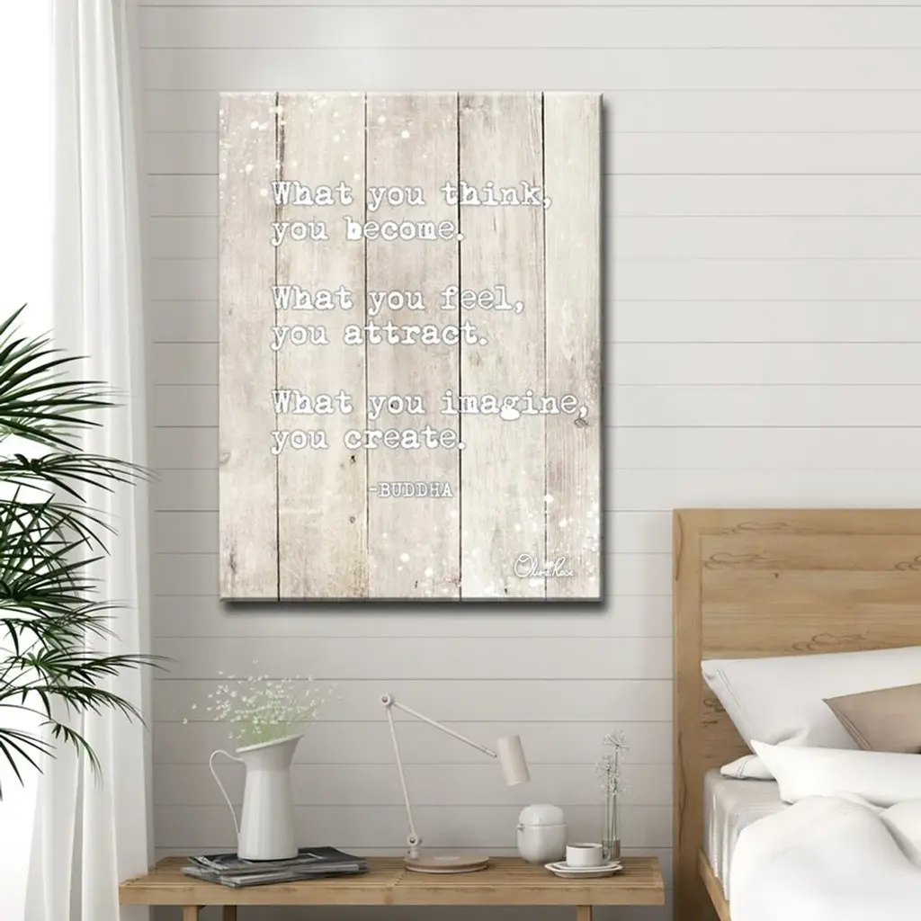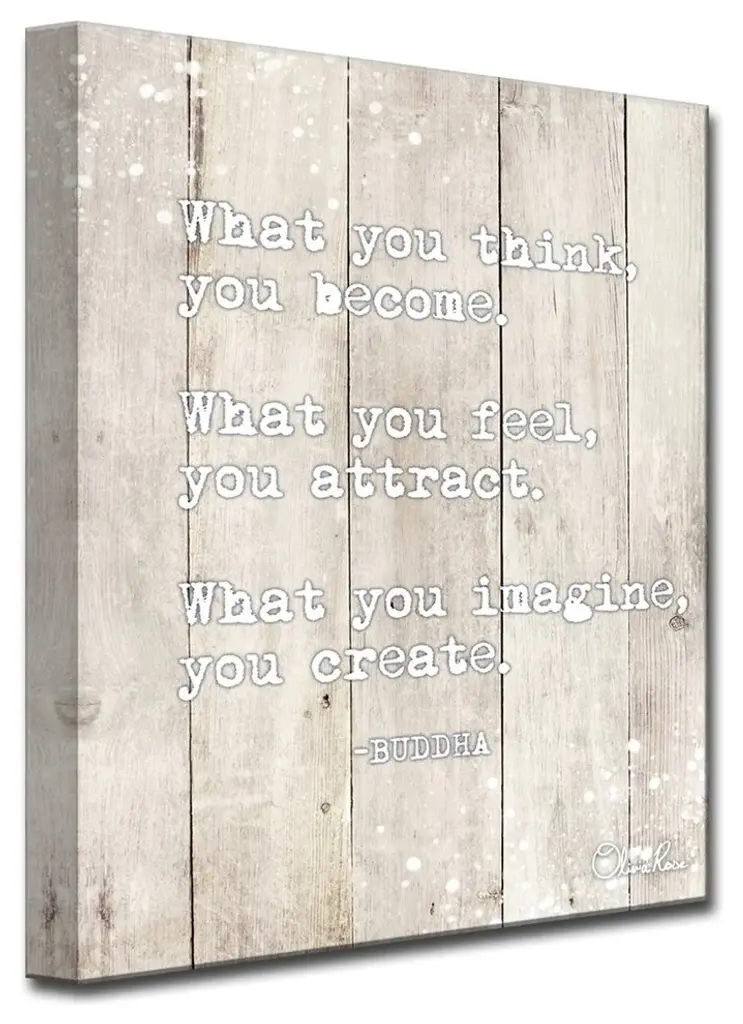 Be Inspired and Inspire with Olivia Rose ''Buddha Quote'' Inspirational Wall Art. Wise words from Buddha are sure to enlighten in this Textual Art Made in the USA by Ready2HangArt. The Canvas Art Print is produced on water resistant canvas with a UV-Resistant gloss coating and wrapped on a wood frame. Brand: Olivia RoseTitle: Buddha QuoteOrientation: VerticalShape: Rectangle Medium: Wrapped CanvasManufacturer: Ready2HangArtModel No. VMOR005Colors: Brown, Wood Grain, WhiteReady2HangArt is an American small business, dedicated to enhancing Wall Decor with innovative designs, and locally made products at a competitive value. Proudly Made in the USA -