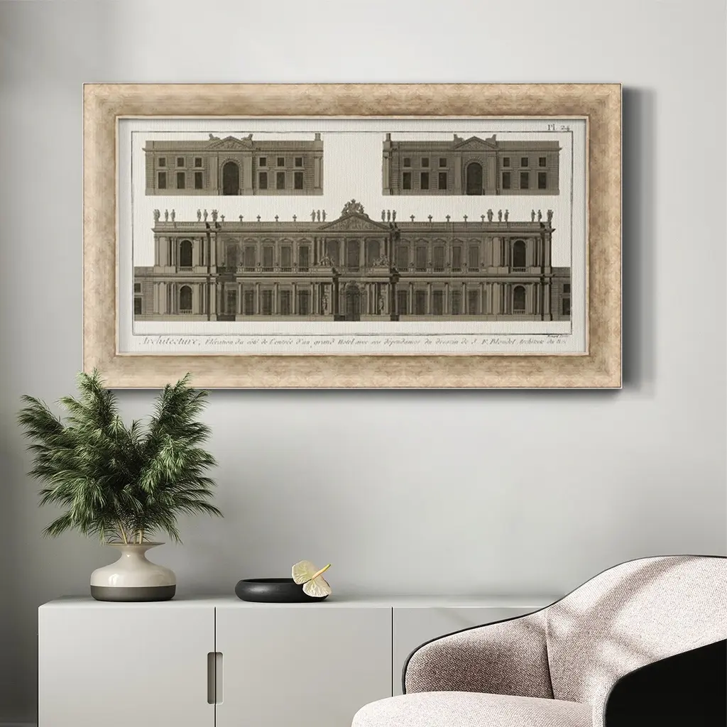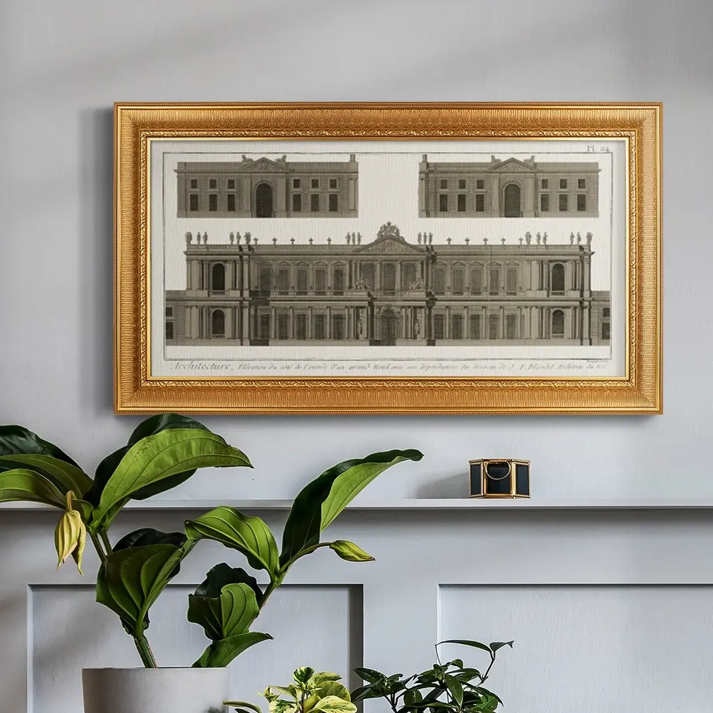 Buildings & Facades I Premium Framed Canvas- Ready to Hang A Premium Framed Canvas created to last. Framed in distressed wood and available in an array of sizes and colors Featuring a beveled a solid wood stretcher bar, each piece comes ready to hand 3 SIZES AVAILABLE 21''X37'' - Overall Size 25''X45'' - Overall Size 29''x53'' - Overall Size Each piece is made to order. Each piece comes with hanging hardware. Made in the USA Ready to Hang Giclee Paper Print Acrylic Glass Beveled Matt Board