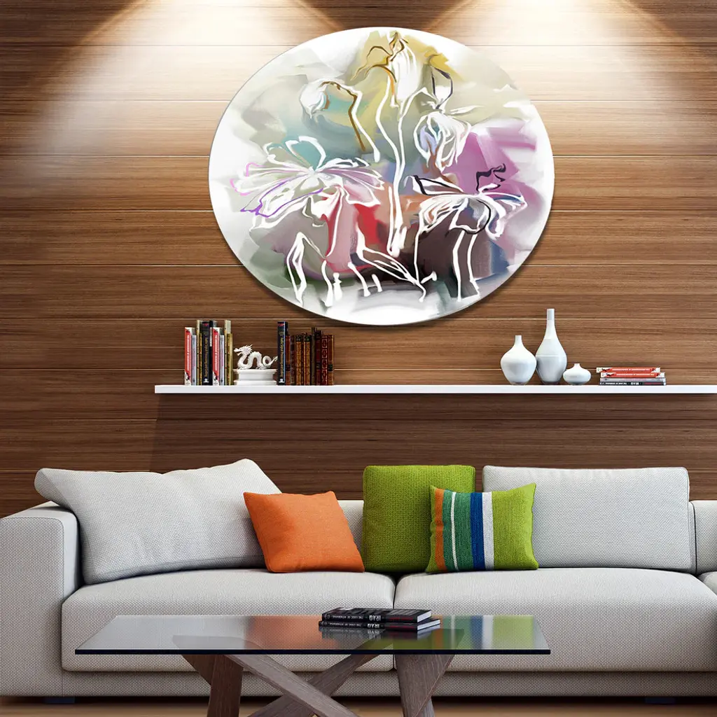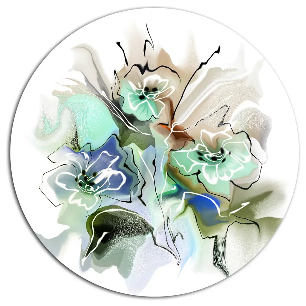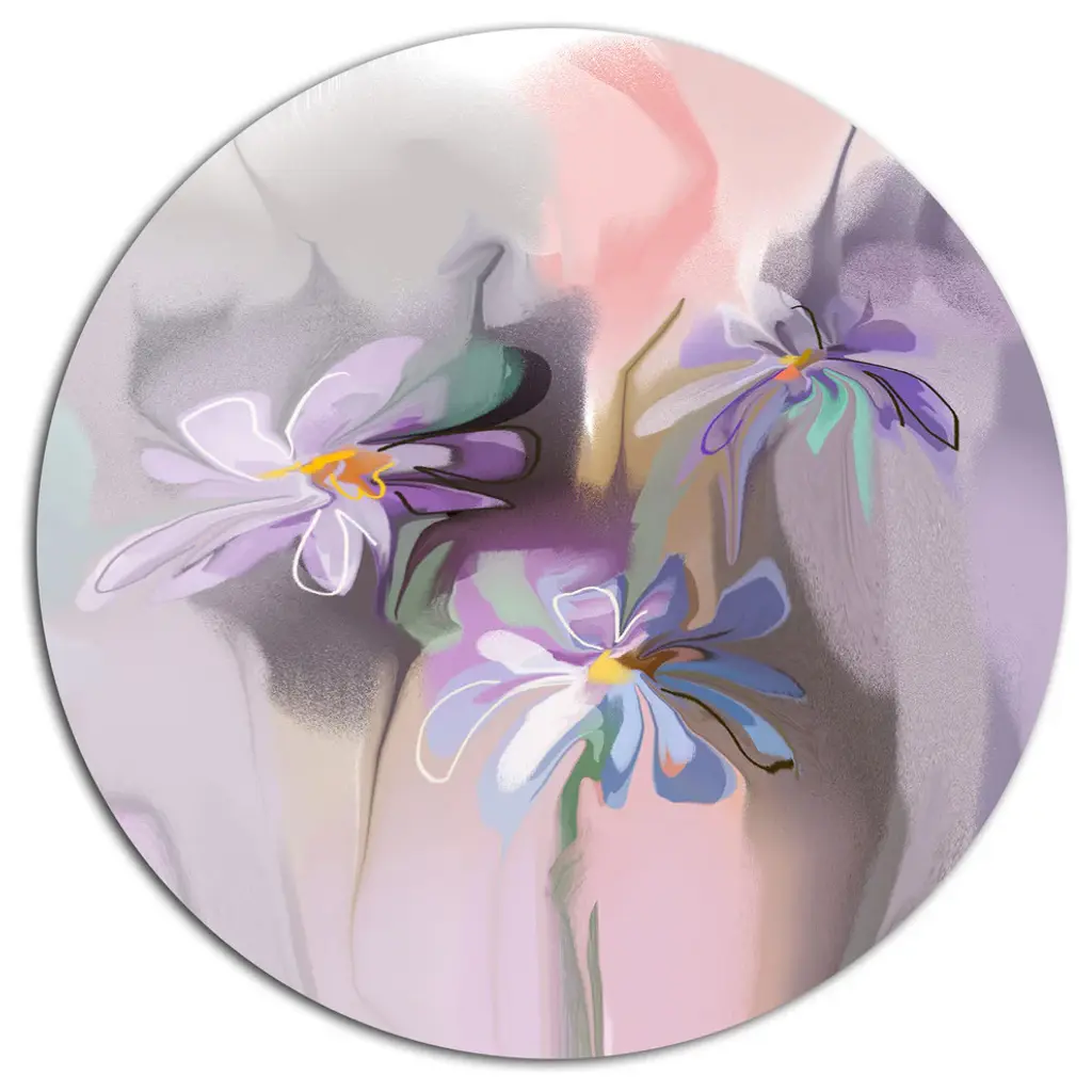 Bring Contemporary Abstraction to your home with this large Circle Metal wall art. This Bunch of Abstract Textured Flowers Metal Artwork makes it the focal point of any room or office. - White Gloss Coating ensures colors are extra vibrant with light reflection.- Aluminum grade Sheet Metal with 1 inch mounting frame on the back giving the illusion that the artwork is floating on the wall..- Mounting Brackets are included along with instructions.- High Quality Digital images are created directly into a glossy aluminum panel producing a stunning and captivating print into the glossy finish of the metal.- Water, Fire and Scratch resistant HD Aluminum panels.- Looks better than any photo paper and guaranteed to last at least 20 years- Easy to clean with a microfiber cloth. Colors are far superior to regular Canvas Art. - Easy to Hang