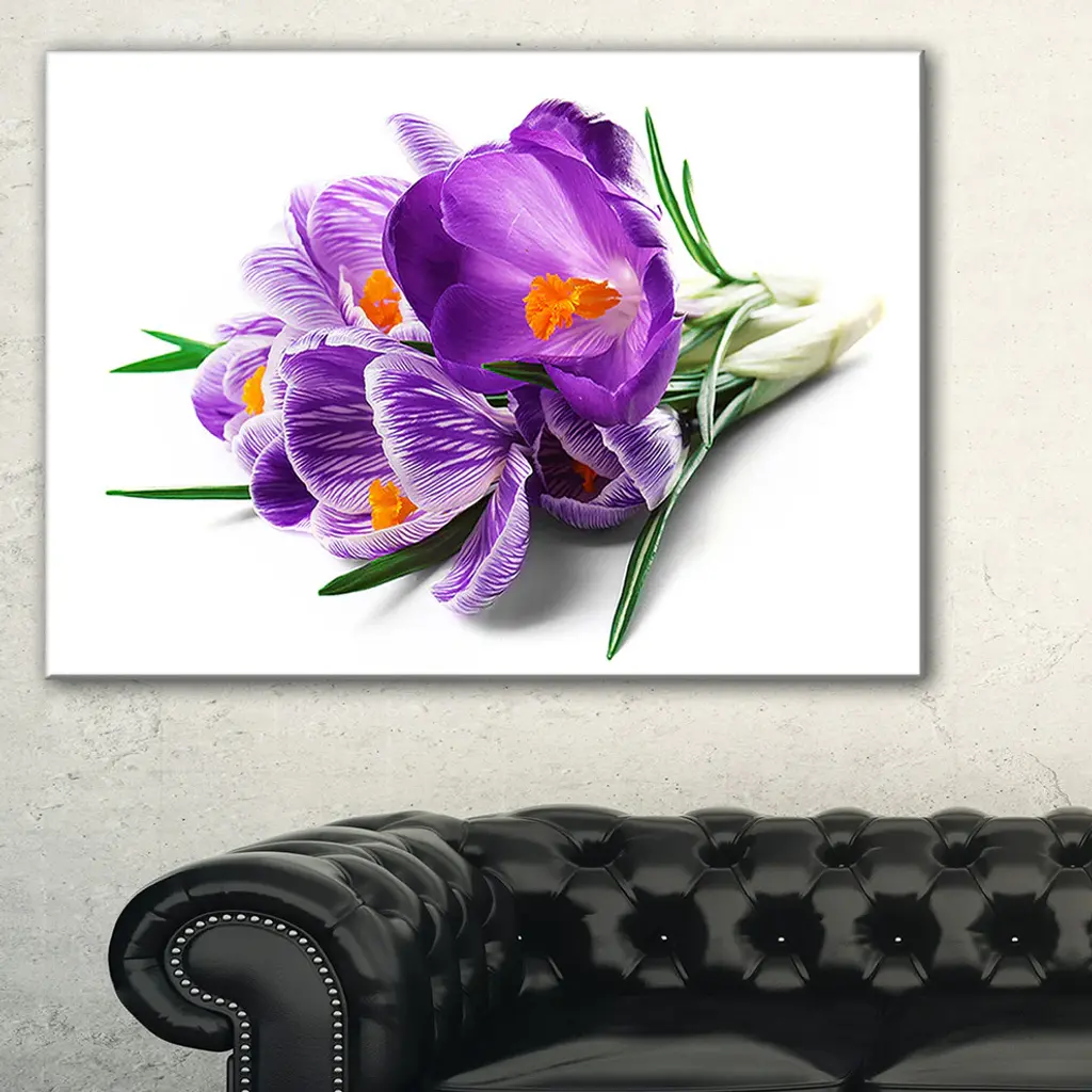 The Bunch of Blooming Crocus Flowers canvas art print is sure to make an impression on anyone who sees it. This artwork is gallery wrapped around a 1-inch solid wood frame and arrives carefully packaged and entirely ready to hang on the wall. Design Art only uses the highest resolution and pigments to ensure a crisp colorful print that is never faded or pixelated. This artwork is sure to be a conversation starter in any home or office.