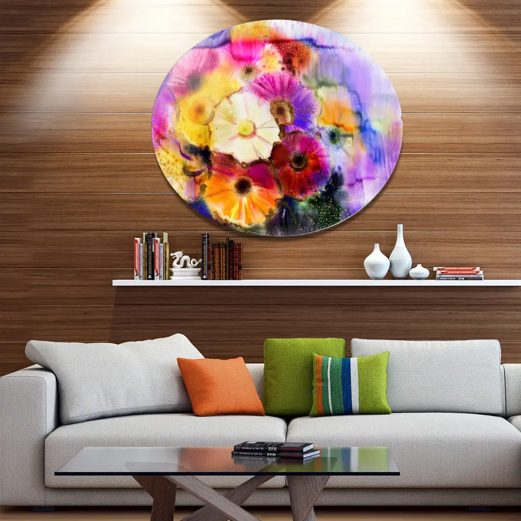 Bunch Of Colored Daisy Flowers, Modern Floral Disc Metal Wall Art, 11"
