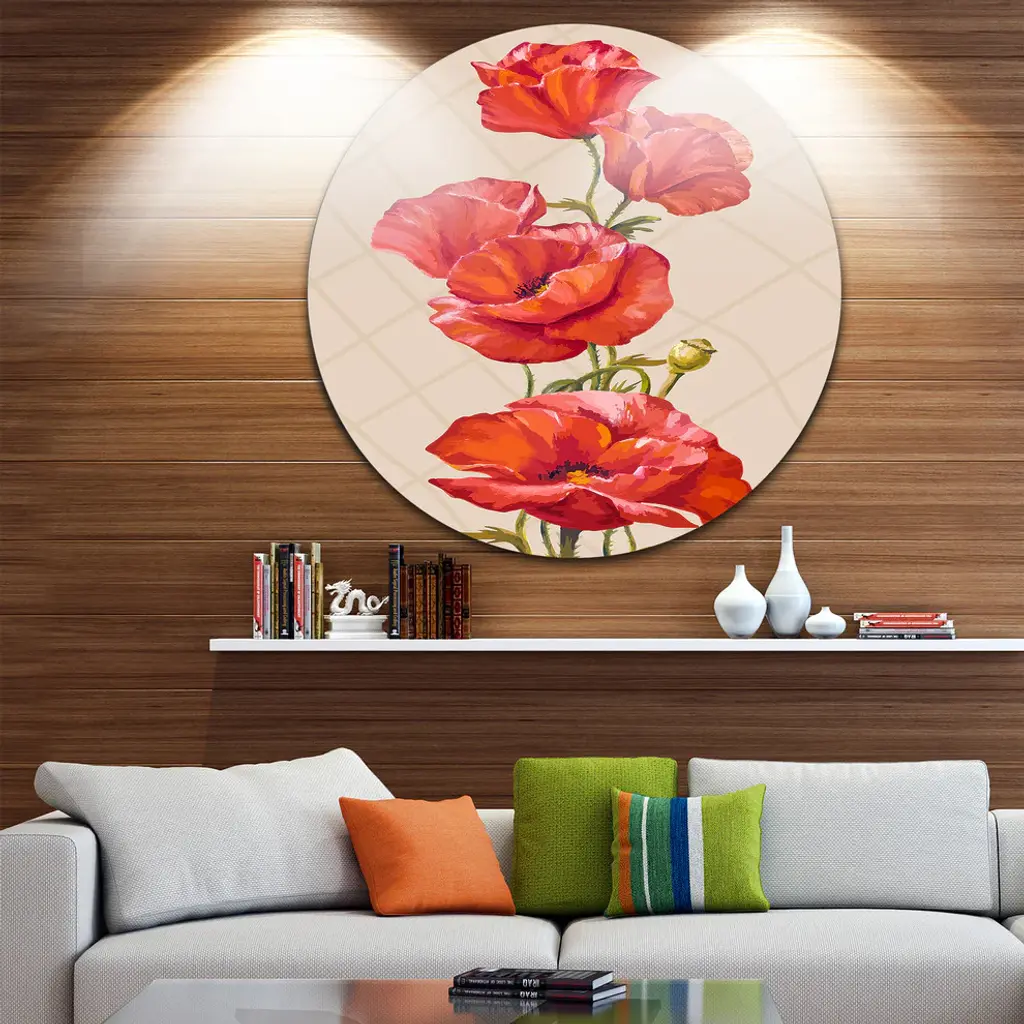Bunch Of Poppies Vector Art, Floral Round Metal Wall Art, 23"