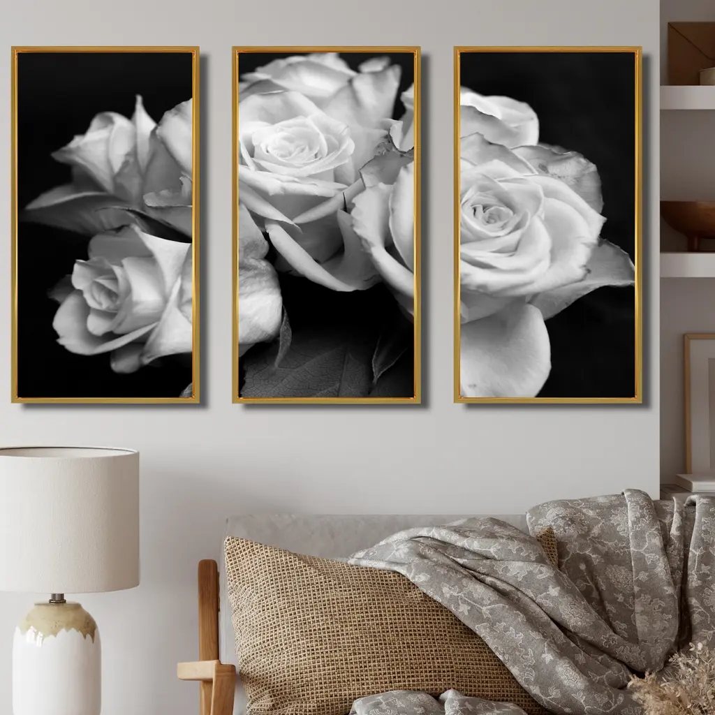 The Bunch of Roses Black and White canvas art print is sure to make an impression on anyone who sees it. This artwork is gallery wrapped around a 1-inch solid wood frame and arrives carefully packaged and entirely ready to hang on the wall. Design Art only uses the highest resolution and pigments to ensure a crisp colorful print that is never faded or pixelated. This artwork is sure to be a conversation starter in any home or office.