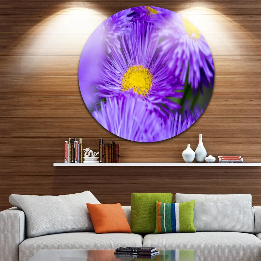 Bunch Of Violet Flowers, Flower Round Metal Wall Art, 36"