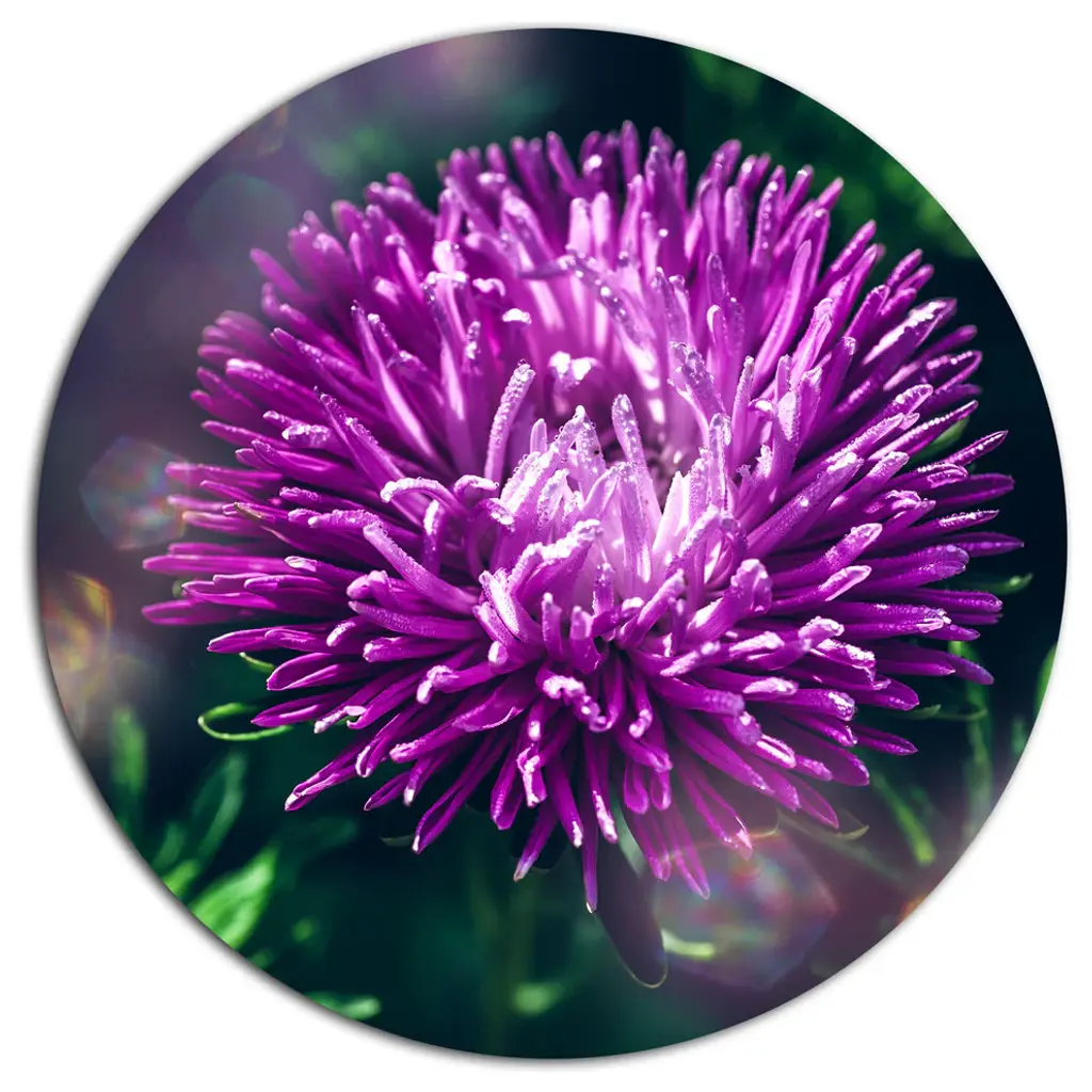 Bring Contemporary Abstraction to your home with this large Circle Metal wall art. This Bunch of Large Violet Flowers Metal Artwork makes it the focal point of any room or office. - White Gloss Coating ensures colors are extra vibrant with light reflection.- Aluminum grade Sheet Metal with 1 inch mounting frame on the back giving the illusion that the artwork is floating on the wall..- Mounting Brackets are included along with instructions.- High Quality Digital images are created directly into a glossy aluminum panel producing a stunning and captivating print into the glossy finish of the metal.- Water, Fire and Scratch resistant HD Aluminum panels.- Looks better than any photo paper and guaranteed to last at least 20 years- Easy to clean with a microfiber cloth. Colors are far superior to regular Canvas Art. - Easy to Hang