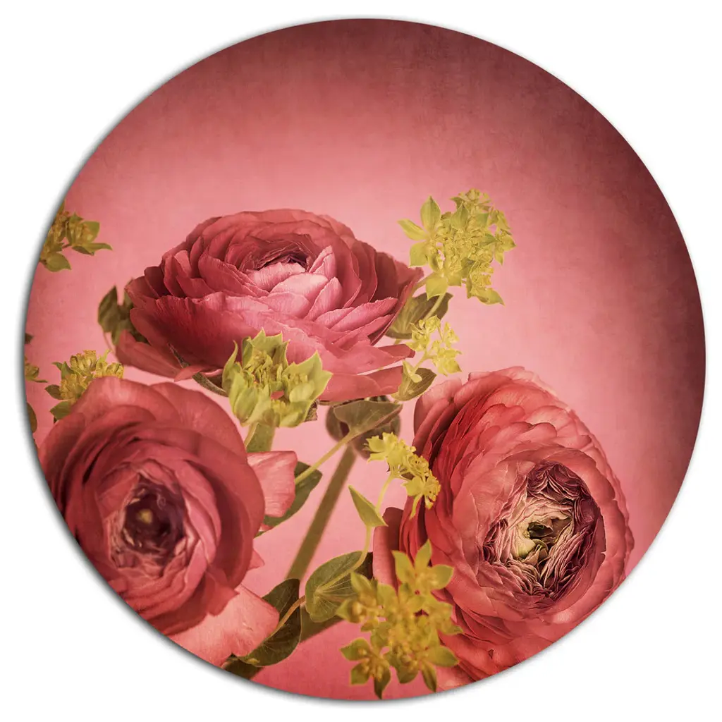Bring Contemporary Abstraction to your home with this large Circle Metal wall art. This Bunch of Yellow Ranunculus Flowers Metal Artwork makes it the focal point of any room or office. - White Gloss Coating ensures colors are extra vibrant with light reflection.- Aluminum grade Sheet Metal with 1 inch mounting frame on the back giving the illusion that the artwork is floating on the wall..- Mounting Brackets are included along with instructions.- High Quality Digital images are created directly into a glossy aluminum panel producing a stunning and captivating print into the glossy finish of the metal.- Water, Fire and Scratch resistant HD Aluminum panels.- Looks better than any photo paper and guaranteed to last at least 20 years- Easy to clean with a microfiber cloth. Colors are far superior to regular Canvas Art. - Easy to Hang