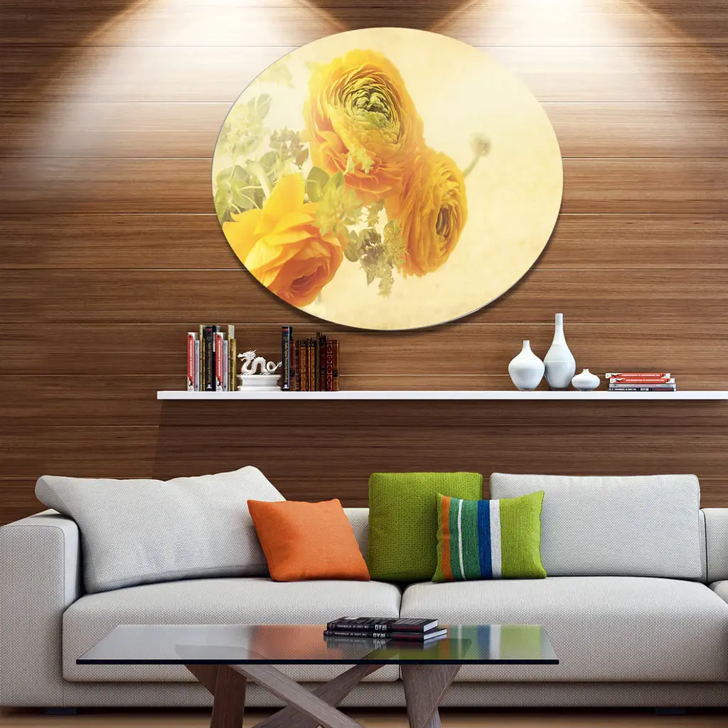 Bunch Of Yellow Ranunculus Flowers, Floral Round Wall Art, 11"