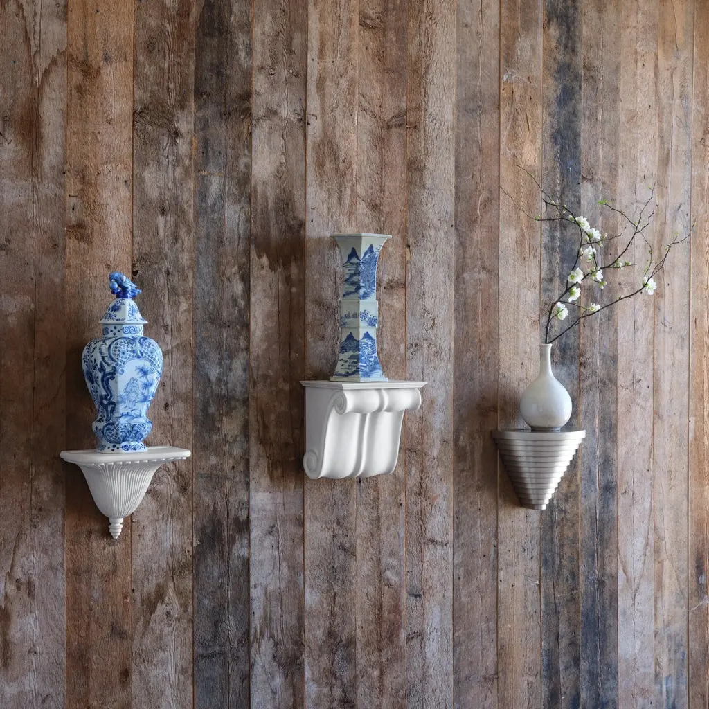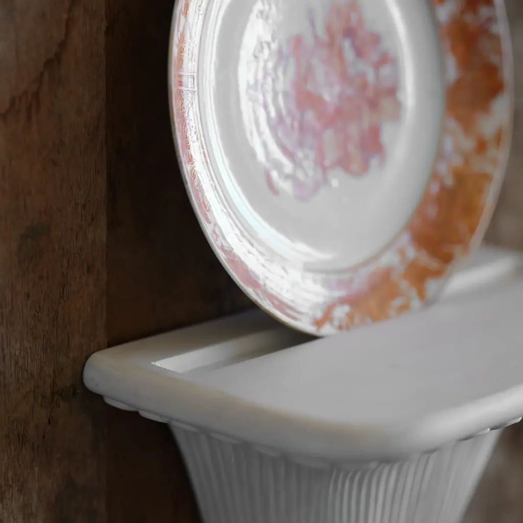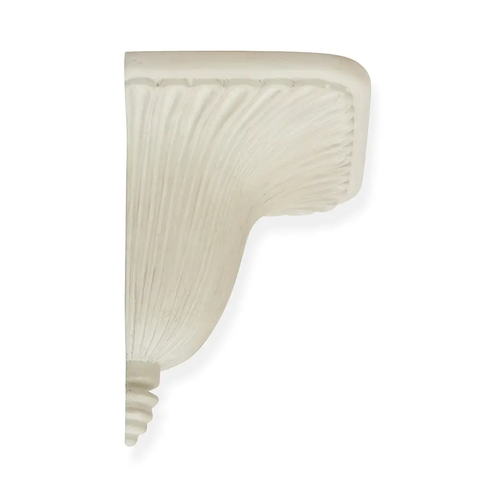 Our Regency Wall Bracket features elegant fluted detailing that fans out from a central finial, reminiscent of classical architecture. The chalky white finish and subtly curved form lends a sense of lightness to the design. Thoughtfully included, a plate groove allows for effortless display of china or decorative objects. Use them in pairs or alongside artwork to create an arresting wall display. Reverse side has keyholes for mounting.