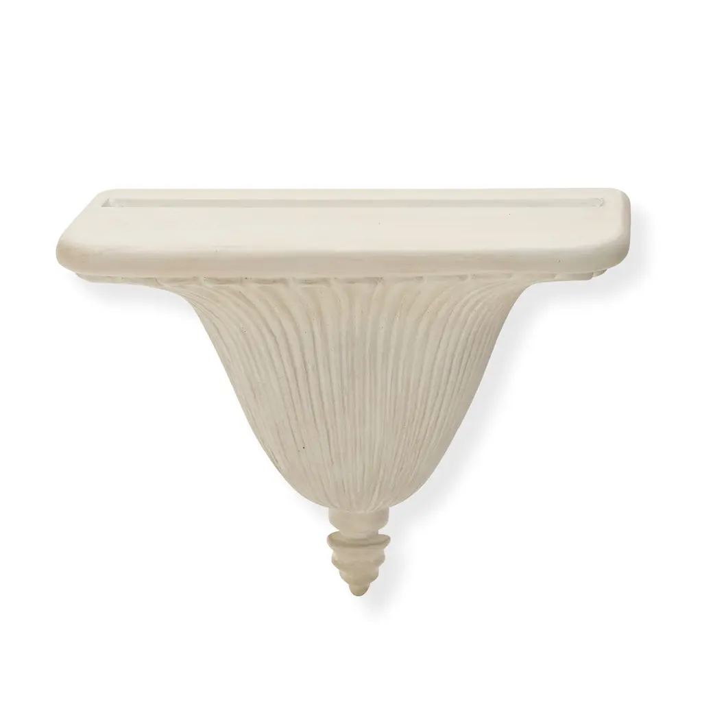 Our Regency Wall Bracket features elegant fluted detailing that fans out from a central finial, reminiscent of classical architecture. The chalky white finish and subtly curved form lends a sense of lightness to the design. Thoughtfully included, a plate groove allows for effortless display of china or decorative objects. Use them in pairs or alongside artwork to create an arresting wall display. Reverse side has keyholes for mounting.
