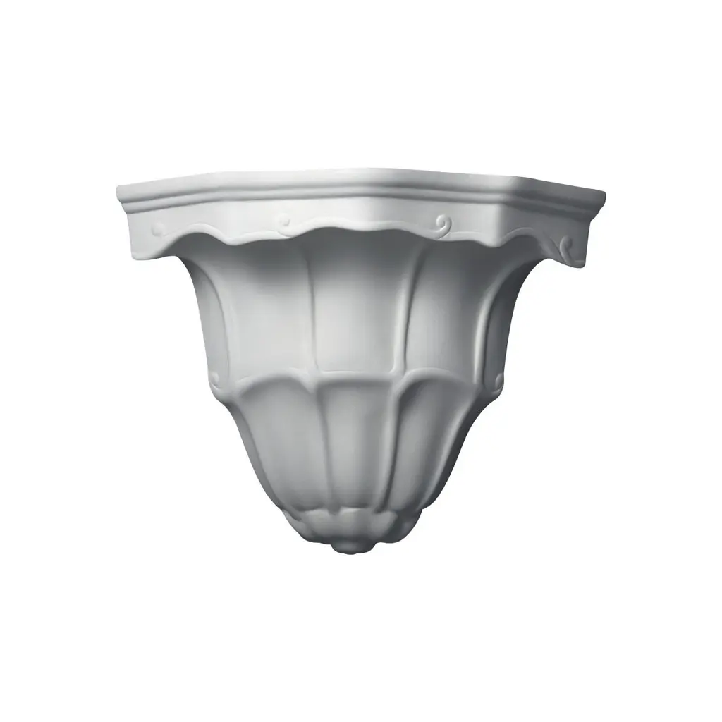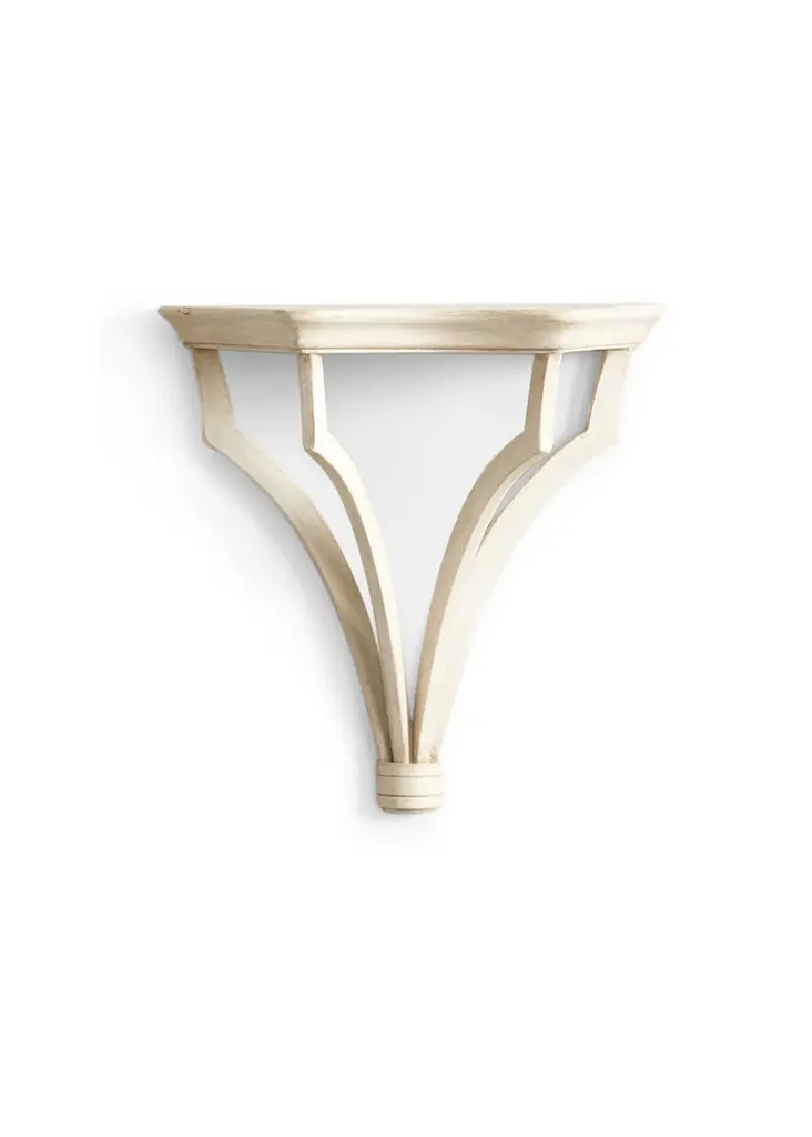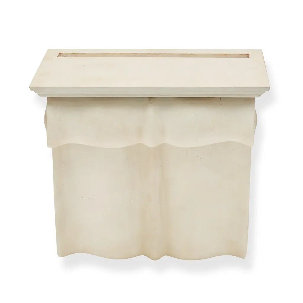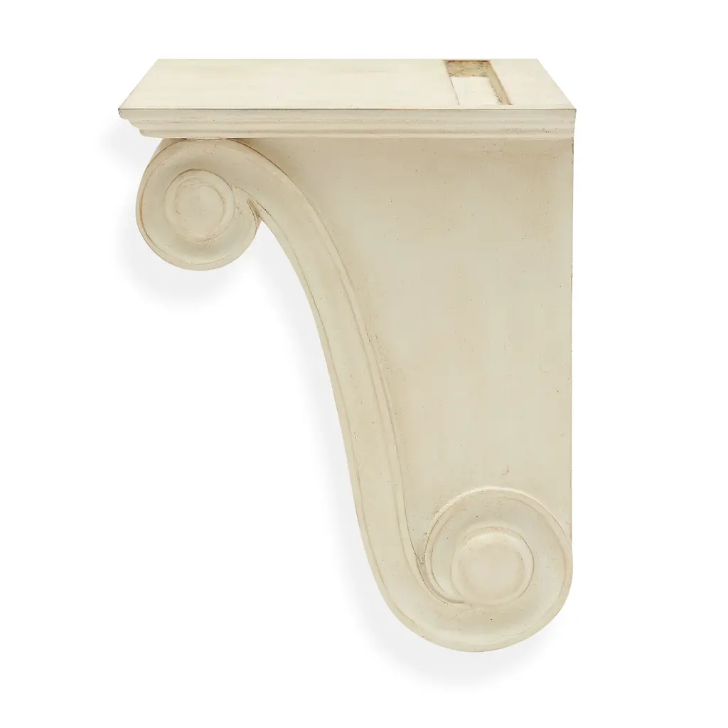 Inspired by the graceful curves of an antique corbel, this wall bracket features beautifully sculpted scrollwork and a chalky white painted finish. A built-in plate groove allows for effortless display of china, while its substantial form makes a striking statement. Use them in pairs or mix with artwork and mirrors to create an elegant, layered wall arrangement. Reverse side has keyholes for mounting.