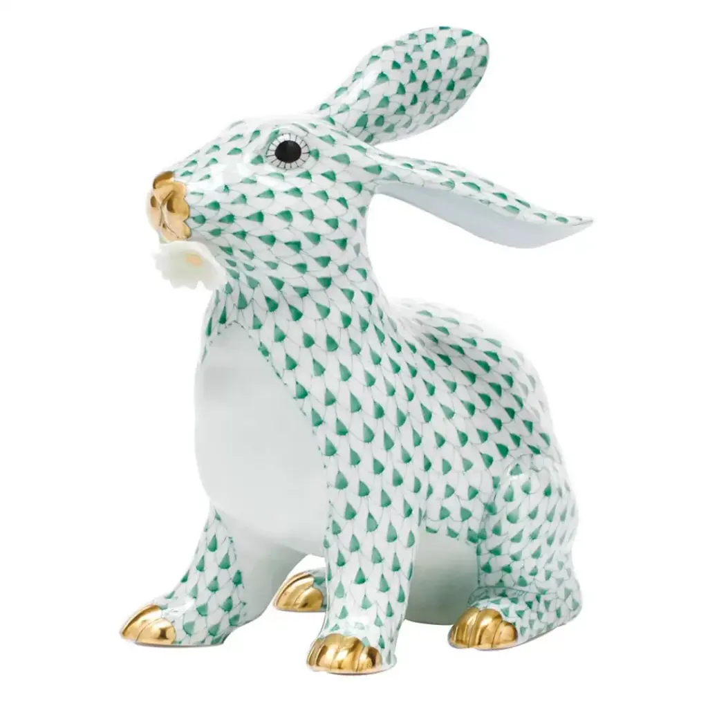 Endearing animals meek and bold, large and small, demure and majestic eagerly await the chance to melt your heart and warm your home. Each is brought to life by the skilled hands of artisans crafting and painting these charming porcelain creatures. The famous fishnet décor adorning many of the animals took form in 1858 when a Herend painter became inspired by a fishscale design he saw on a Chinese porcelain plate and painted a similar pattern onto a rooster figurine to imitate feathers. The rest is history, with the fishnet design now a Herend signature prized worldwide. Now the biggest porcelain manufactory in Europe, Herend was founded in 1826 to produce earthenware in the small Hungarian village for which it was named. At the time, Hungary was flooded with low-cost pottery, but in 1839, Mor Fischer became the Manufactory’s new owner and he decided to focus on producing dinnerware replacement pieces for Europe’s royal families to complement their valuable porcelain patterns from Germany and the Far East. As his client base grew, Fischer commissioned his artists to begin designing dinnerware patterns of their own. Queen Victoria’s 1851 purchase of a large set for Windsor Castle was a milestone, setting the stage for aristocrats throughout Europe to clamor for Herend in their estates. In the 1850s, Herend added meticulously-crafted figurines to its creations. Herend’s trademark fishnet pattern, which is widely recognized and prized as Herend’s signature design, started in 1858 when an artist who was intrigued with a Chinese plate’s fish scale design painted it onto a rooster figurine to imitate feathers.