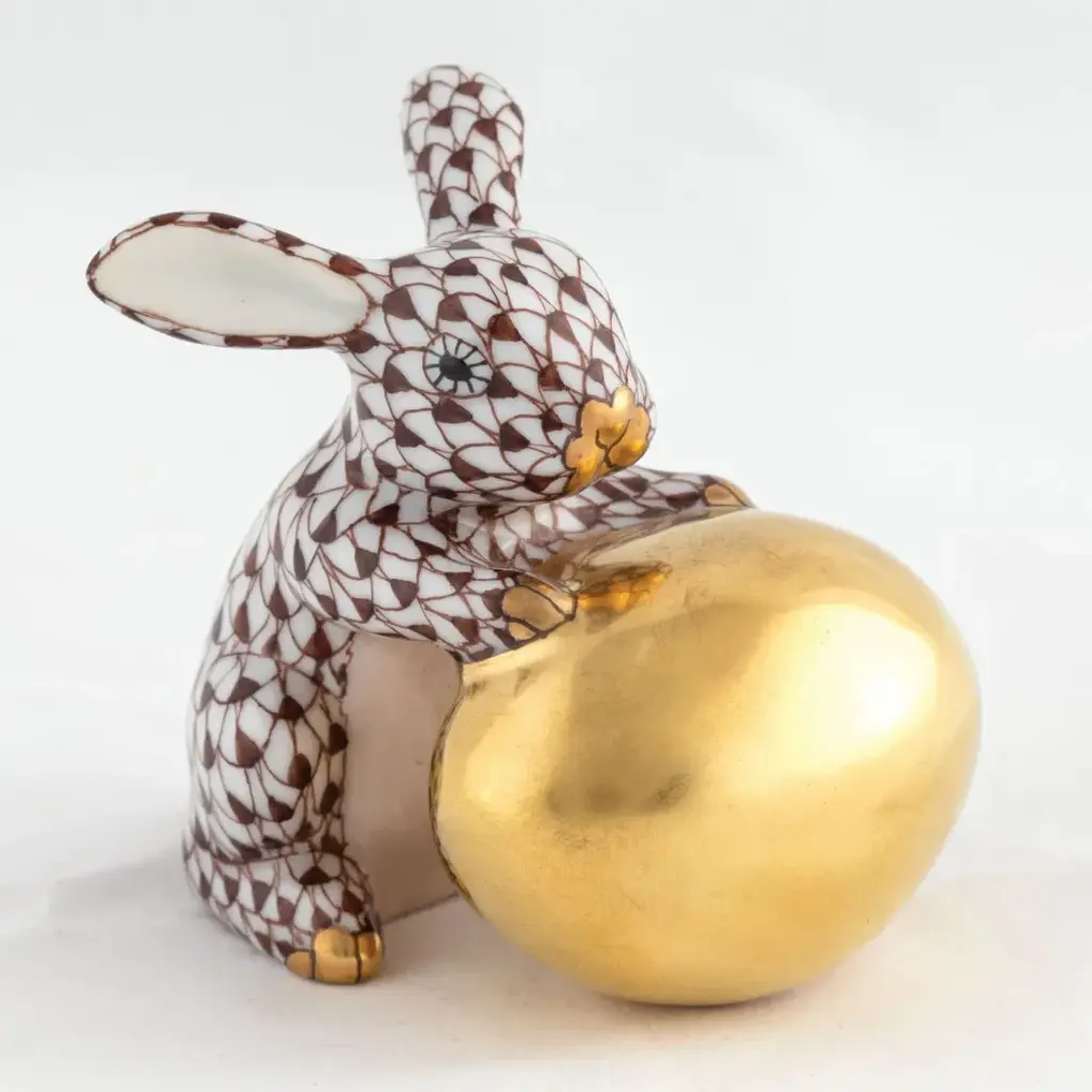 Endearing animals meek and bold, large and small, demure and majestic eagerly await the chance to melt your heart and warm your home. Each is brought to life by the skilled hands of artisans crafting and painting these charming porcelain creatures. The famous fishnet décor adorning many of the animals took form in 1858 when a Herend painter became inspired by a fishscale design he saw on a Chinese porcelain plate and painted a similar pattern onto a rooster figurine to imitate feathers. The rest is history, with the fishnet design now a Herend signature prized worldwide. Now the biggest porcelain manufactory in Europe, Herend was founded in 1826 to produce earthenware in the small Hungarian village for which it was named. At the time, Hungary was flooded with low-cost pottery, but in 1839, Mor Fischer became the Manufactory’s new owner and he decided to focus on producing dinnerware replacement pieces for Europe’s royal families to complement their valuable porcelain patterns from Germany and the Far East. As his client base grew, Fischer commissioned his artists to begin designing dinnerware patterns of their own. Queen Victoria’s 1851 purchase of a large set for Windsor Castle was a milestone, setting the stage for aristocrats throughout Europe to clamor for Herend in their estates. In the 1850s, Herend added meticulously-crafted figurines to its creations. Herend’s trademark fishnet pattern, which is widely recognized and prized as Herend’s signature design, started in 1858 when an artist who was intrigued with a Chinese plate’s fish scale design painted it onto a rooster figurine to imitate feathers.