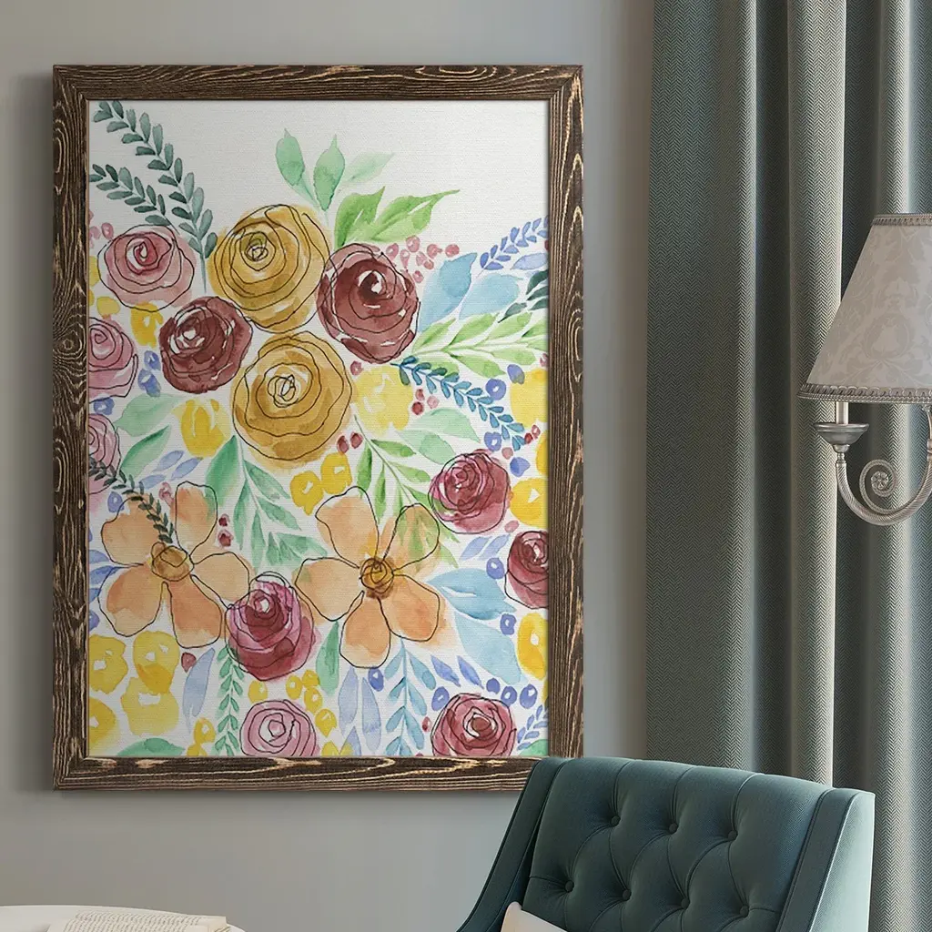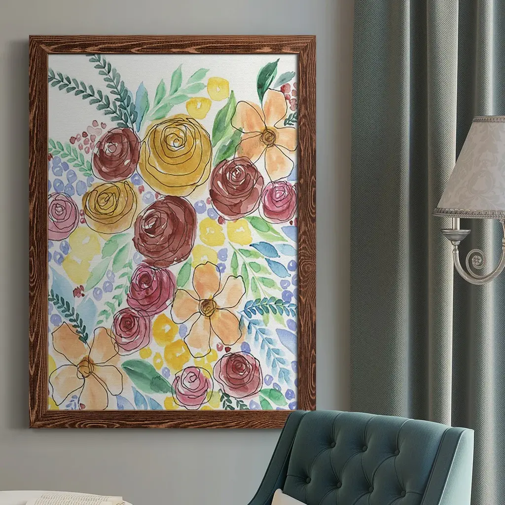 Buoyant Bouquet I -EZ SWITCH Framed Print w/glass-Cherry Red A delightful, framed print. Featuring a solid wood frame with real wood glass. This premium print is giclee quality. In addition, every frame features a removable back and table top stand. This allows you to change your art in the future or to just stand the art on a table for a new look. We are sure you'll enjoy our new series of EZ SWITCH Framed Art. Solid Wood Frame Real Glass Removable / Replaceable Art Built in Tabletop Stand Sizes range from 4x6 up to 12x15 - buy just one or pair them up as sets as you see fit.