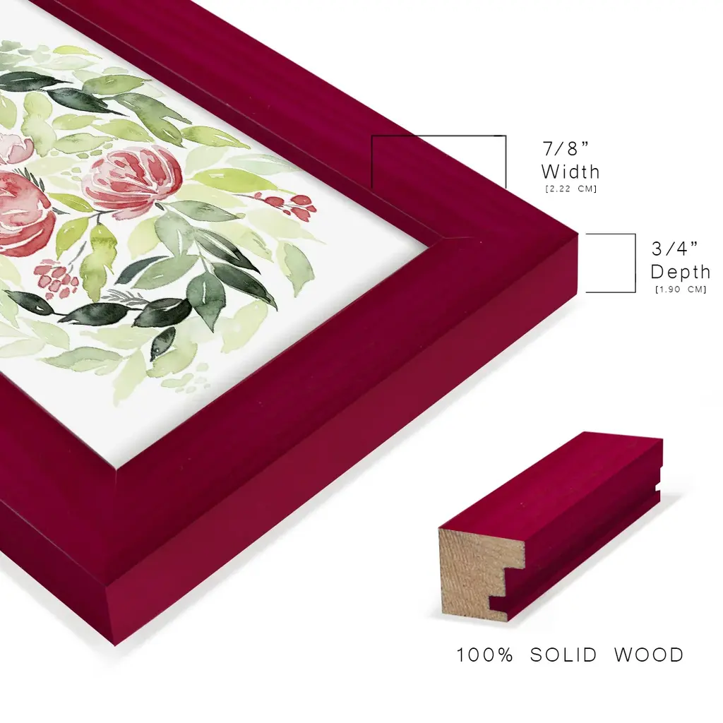 Buoyant Bouquet II -EZ SWITCH Framed Print w/glass-Cherry Red A delightful, framed print. Featuring a solid wood frame with real wood glass. This premium print is giclee quality. In addition, every frame features a removable back and table top stand. This allows you to change your art in the future or to just stand the art on a table for a new look. We are sure you'll enjoy our new series of EZ SWITCH Framed Art. Solid Wood Frame Real Glass Removable / Replaceable Art Built in Tabletop Stand Sizes range from 4x6 up to 12x15 - buy just one or pair them up as sets as you see fit.