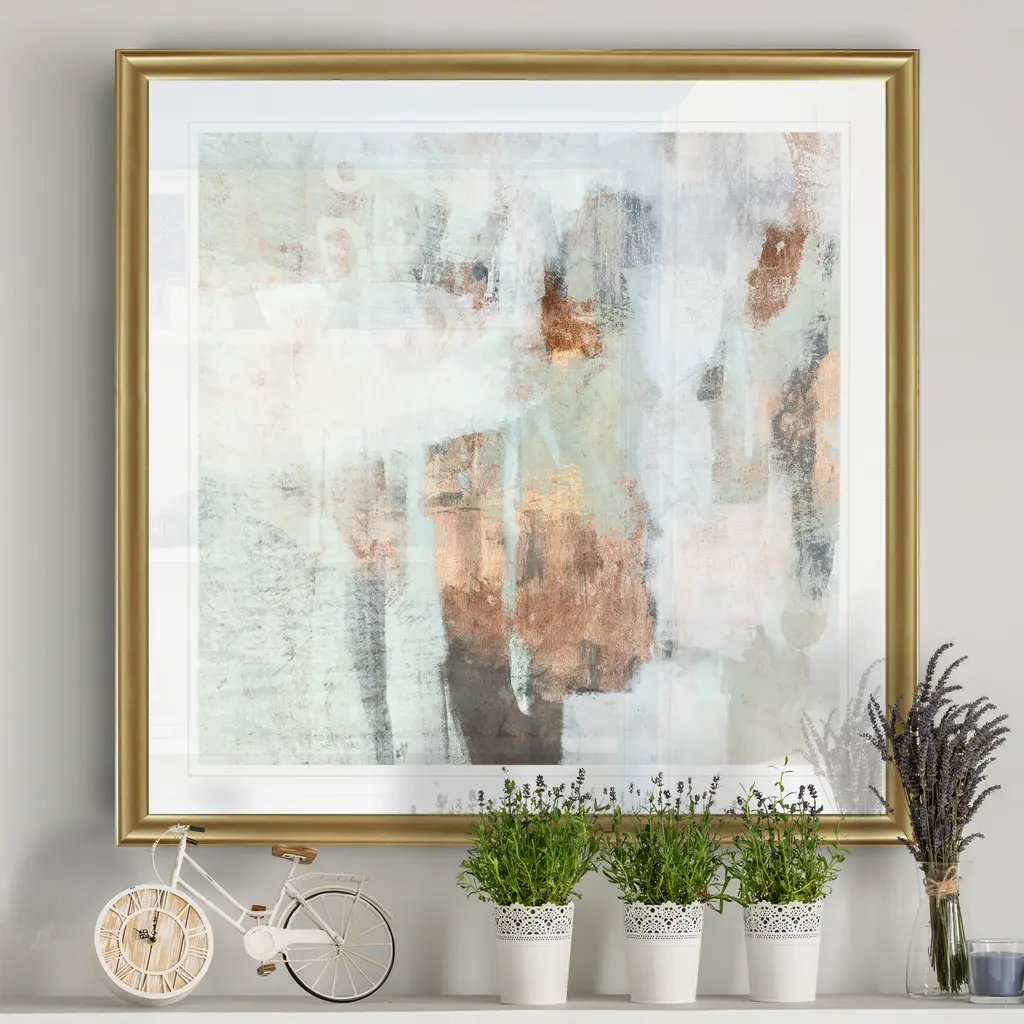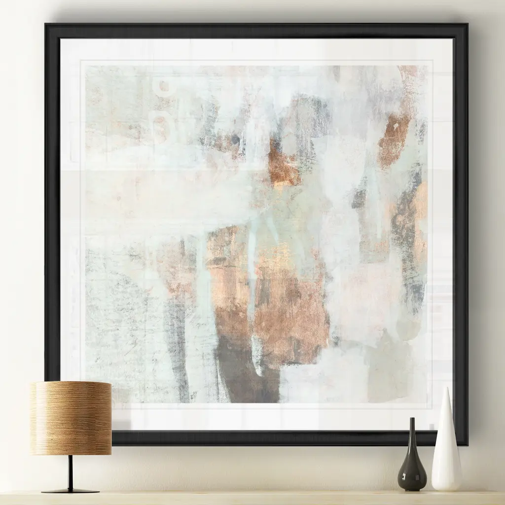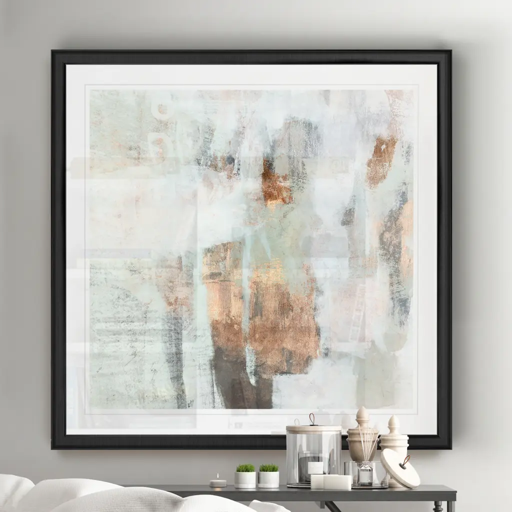 Burnished Mint I -Black Framed Print A premium Black Framed giclee print Featuring a beveled a matt , acrylic glass, and a high quality giclee print 5 SIZES AVAILABLE 34''x34''- Overall Size 30''x30'' - Overall Size 26''x26''' - Overall Size 22''x22''' - Overall Size 18''x18''' - Overall Size Each piece is made to order. Built to Last Each piece comes ready to hang Fade and Water resistant Made domestically