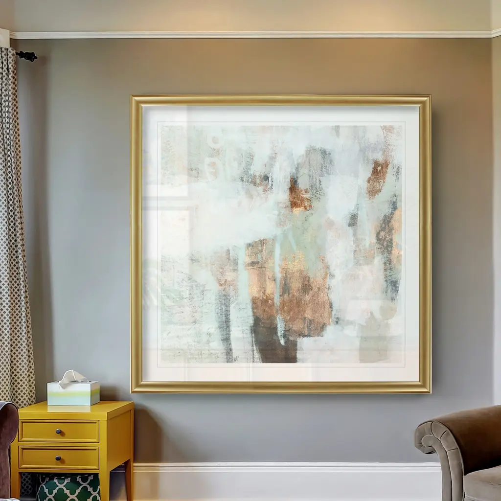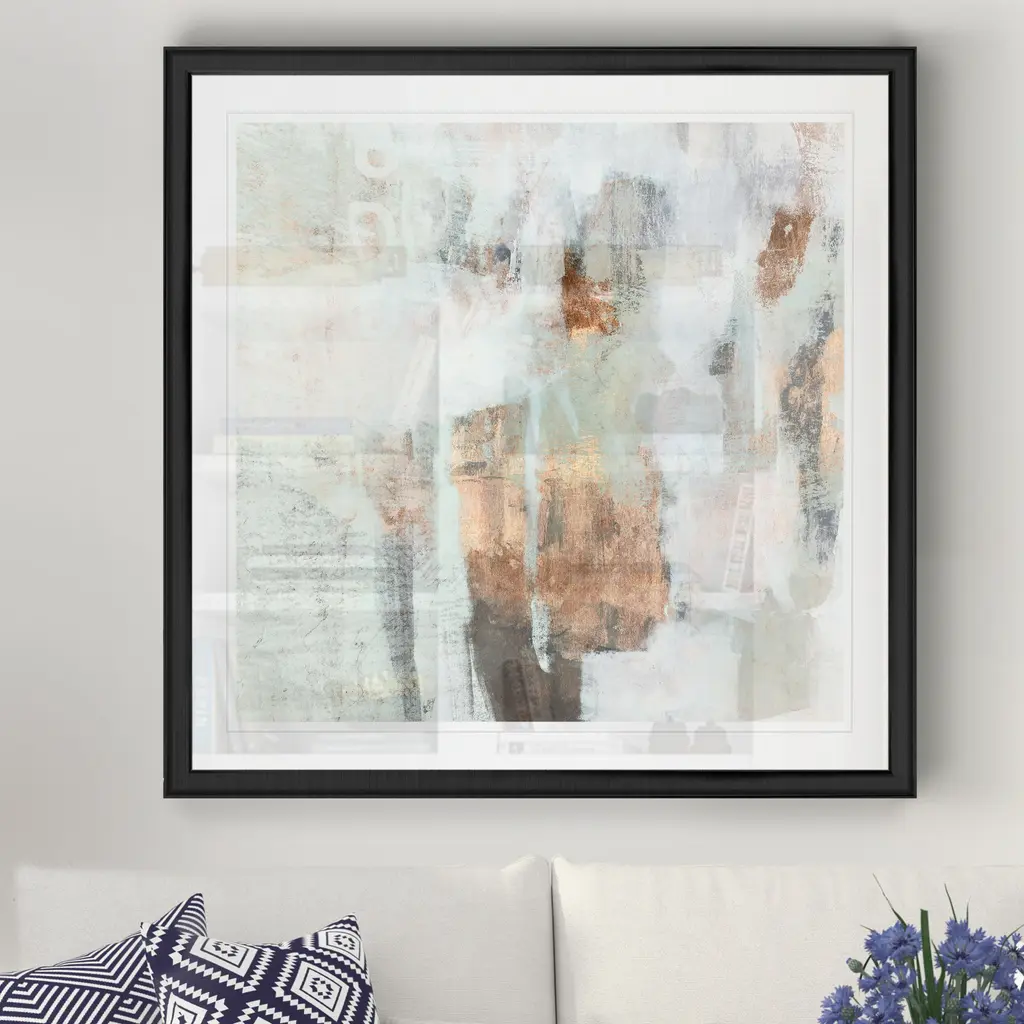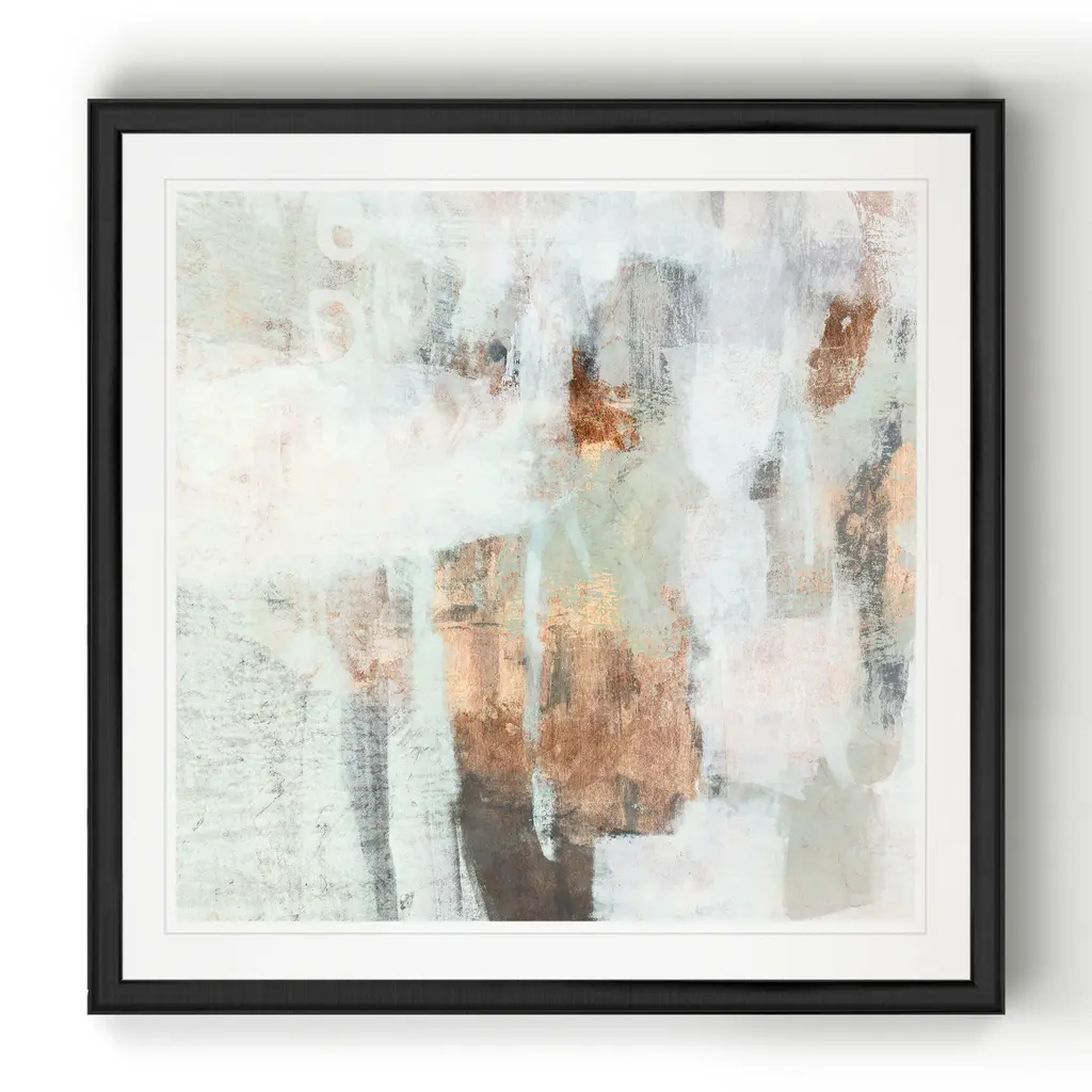 Burnished Mint I -Black Framed Print A premium Black Framed giclee print Featuring a beveled a matt , acrylic glass, and a high quality giclee print 5 SIZES AVAILABLE 34''x34''- Overall Size 30''x30'' - Overall Size 26''x26''' - Overall Size 22''x22''' - Overall Size 18''x18''' - Overall Size Each piece is made to order. Built to Last Each piece comes ready to hang Fade and Water resistant Made domestically