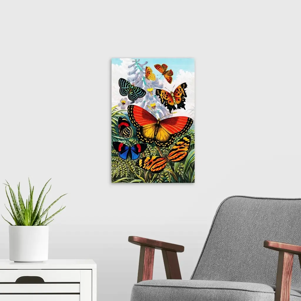 Butterflies, historical artwork. Published in Gems of Nature and Art by R. Fawcett, in London, circa 1880.