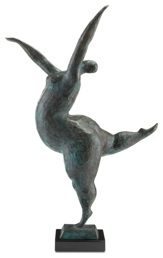 Our exuberant Butterfly Ballerina Bronze sculpture is made from a lost-wax technique when boiling bronze is poured into a mold covering an original wax sculpture that melts away. Once set, there is a very long process of refining the bronze to give it patina. This is among our bronze art pieces created by an unknown artist.