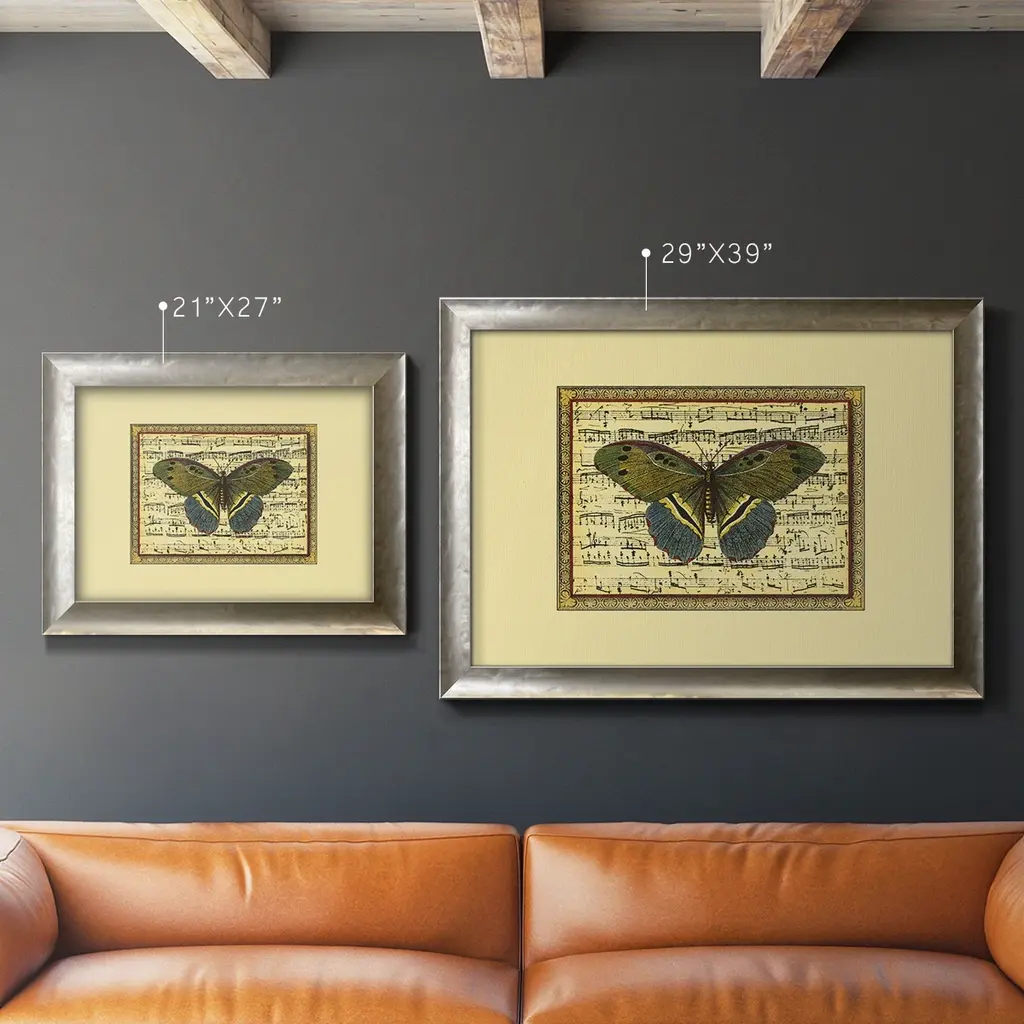 Butterfly Harmony II Premium Framed Canvas- Ready to Hang A Premium Framed Canvas created to last. Framed in distressed wood and available in an array of sizes and colors Featuring a beveled a solid wood stretcher bar, each piece comes ready to hand 3 SIZES AVAILABLE 16''X20'' - Overall Size 18'X27'' - Overall Size 24''x36'' - Overall Size Each piece is made to order. Each piece comes with hanging hardware. Made in the USA Ready to Hang Giclee Paper Print Acrylic Glass Beveled Matt Board