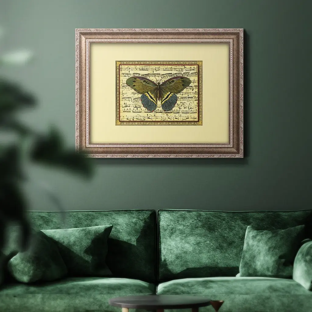 Butterfly Harmony II Premium Framed Canvas- Ready to Hang A Premium Framed Canvas created to last. Framed in distressed wood and available in an array of sizes and colors Featuring a beveled a solid wood stretcher bar, each piece comes ready to hand 3 SIZES AVAILABLE 16''X20'' - Overall Size 18'X27'' - Overall Size 24''x36'' - Overall Size Each piece is made to order. Each piece comes with hanging hardware. Made in the USA Ready to Hang Giclee Paper Print Acrylic Glass Beveled Matt Board