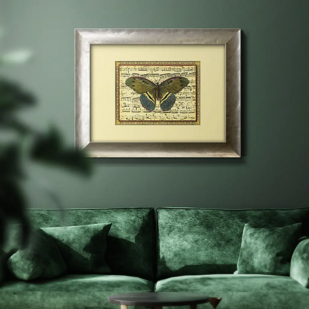 Butterfly Harmony II Premium Framed Canvas- Ready to Hang A Premium Framed Canvas created to last. Framed in distressed wood and available in an array of sizes and colors Featuring a beveled a solid wood stretcher bar, each piece comes ready to hand 3 SIZES AVAILABLE 16''X20'' - Overall Size 18'X27'' - Overall Size 24''x36'' - Overall Size Each piece is made to order. Each piece comes with hanging hardware. Made in the USA Ready to Hang Giclee Paper Print Acrylic Glass Beveled Matt Board
