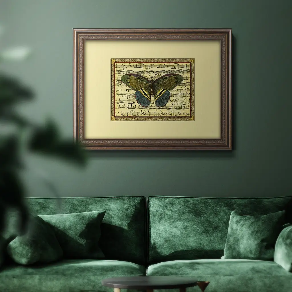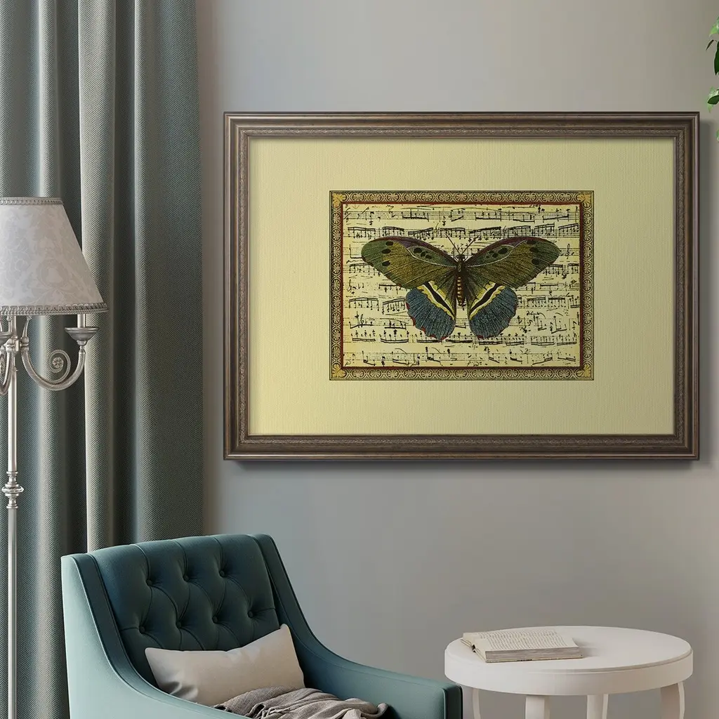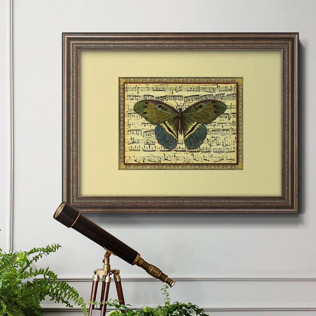 Butterfly Harmony II Premium Framed Canvas- Ready to Hang A Premium Framed Canvas created to last. Framed in distressed wood and available in an array of sizes and colors Featuring a beveled a solid wood stretcher bar, each piece comes ready to hand 3 SIZES AVAILABLE 16''X20'' - Overall Size 18'X27'' - Overall Size 24''x36'' - Overall Size Each piece is made to order. Each piece comes with hanging hardware. Made in the USA Ready to Hang Giclee Paper Print Acrylic Glass Beveled Matt Board
