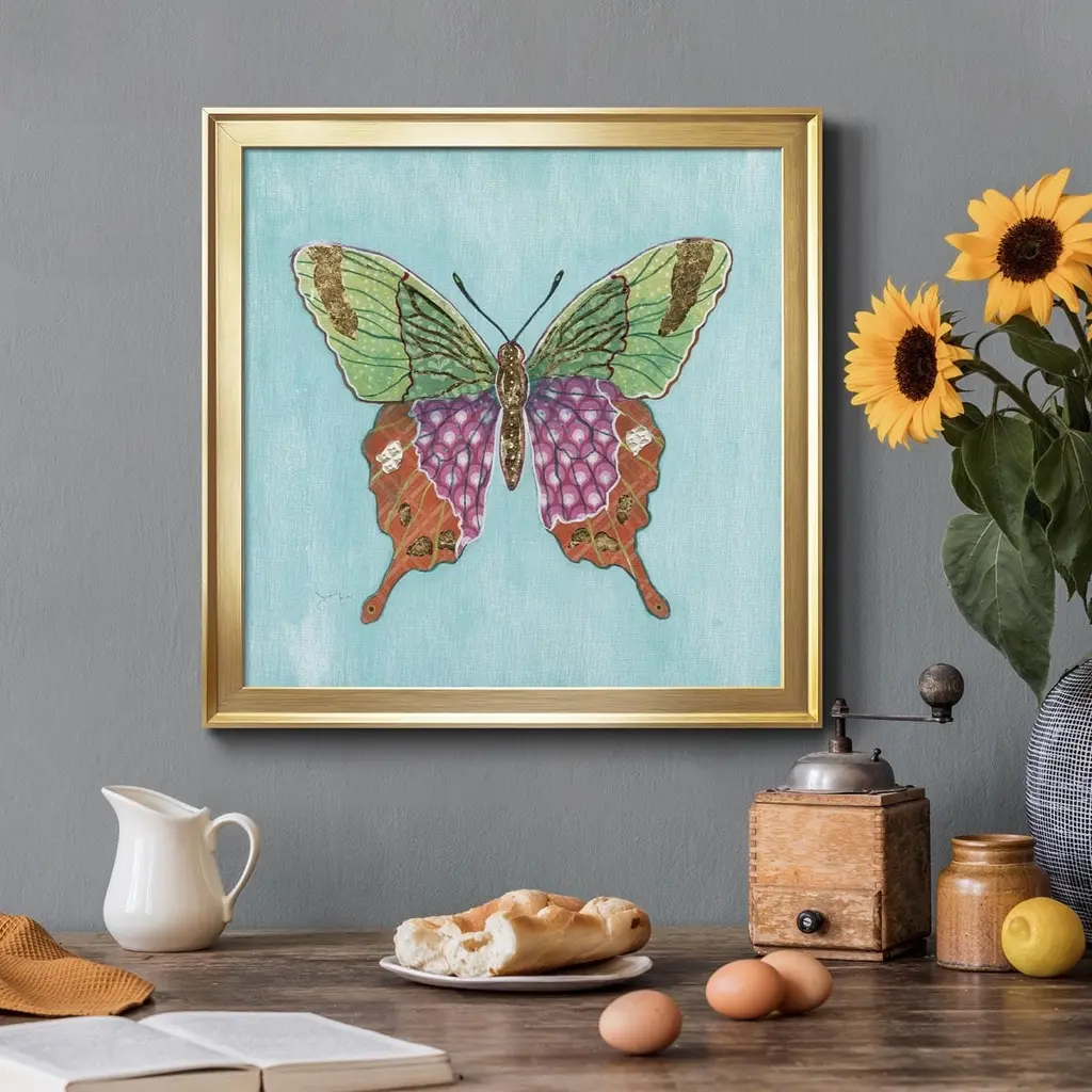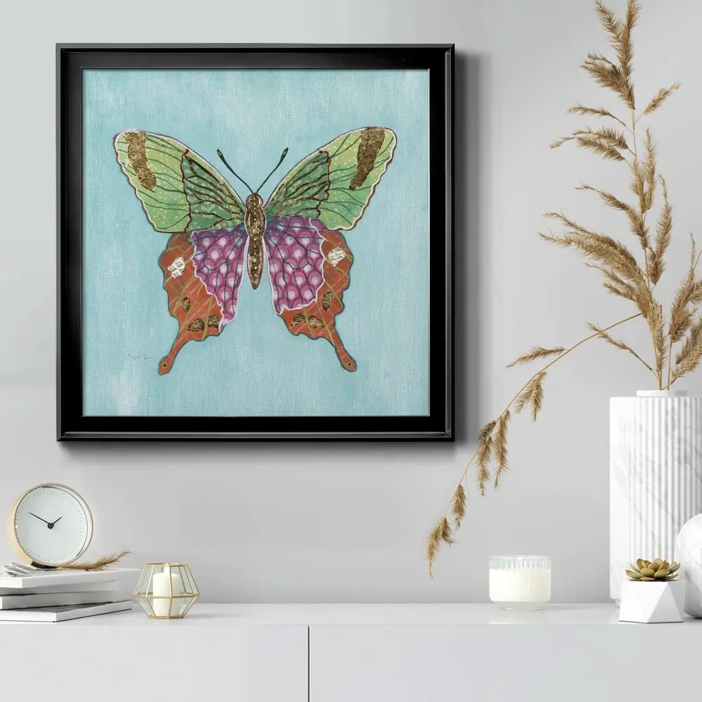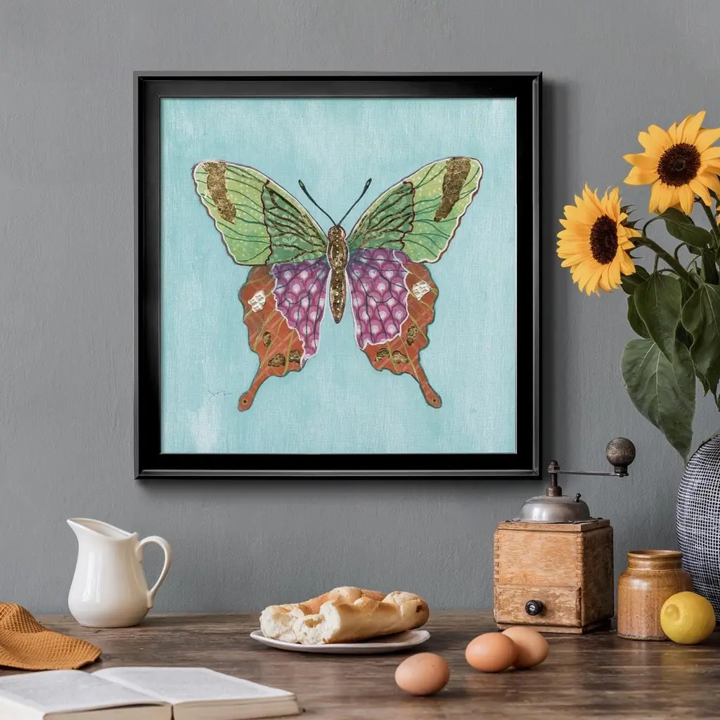 Butterfly on Blue-Premium Gallery Wrapped Canvas - Ready to Hang A premium hand stretched gallery wrapped canvas print created to last. Featuring a beveled a solid wood stretcher bar, each piece comes ready to hand 5 SIZES AVAILABLE 17.5''X17.5'' - Overall Size 22.5''x22.5'' - Overall Size 26.5''x26.5'' - Overall Size 30.5''x30.5'' - Overall Size 34.5''x34.5'' - Overall Size Each piece is made to order. Built to Last Each piece comes ready to hang Solid wood stretcher Fade and Water resistant Made domestically