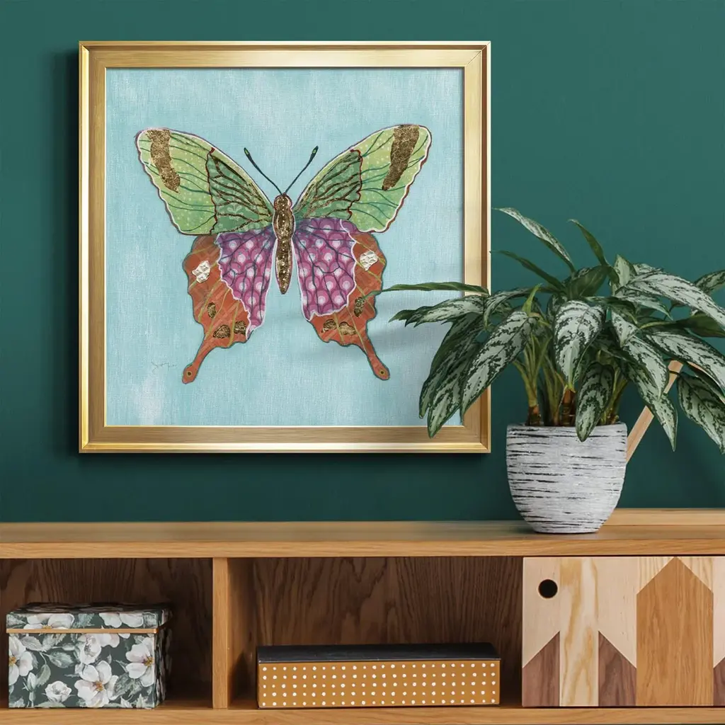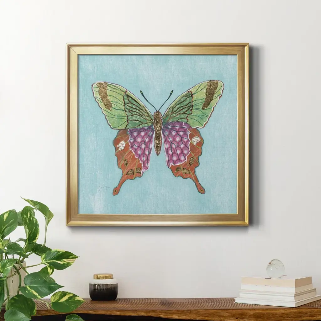Butterfly on Blue-Premium Gallery Wrapped Canvas - Ready to Hang A premium hand stretched gallery wrapped canvas print created to last. Featuring a beveled a solid wood stretcher bar, each piece comes ready to hand 5 SIZES AVAILABLE 17.5''X17.5'' - Overall Size 22.5''x22.5'' - Overall Size 26.5''x26.5'' - Overall Size 30.5''x30.5'' - Overall Size 34.5''x34.5'' - Overall Size Each piece is made to order. Built to Last Each piece comes ready to hang Solid wood stretcher Fade and Water resistant Made domestically
