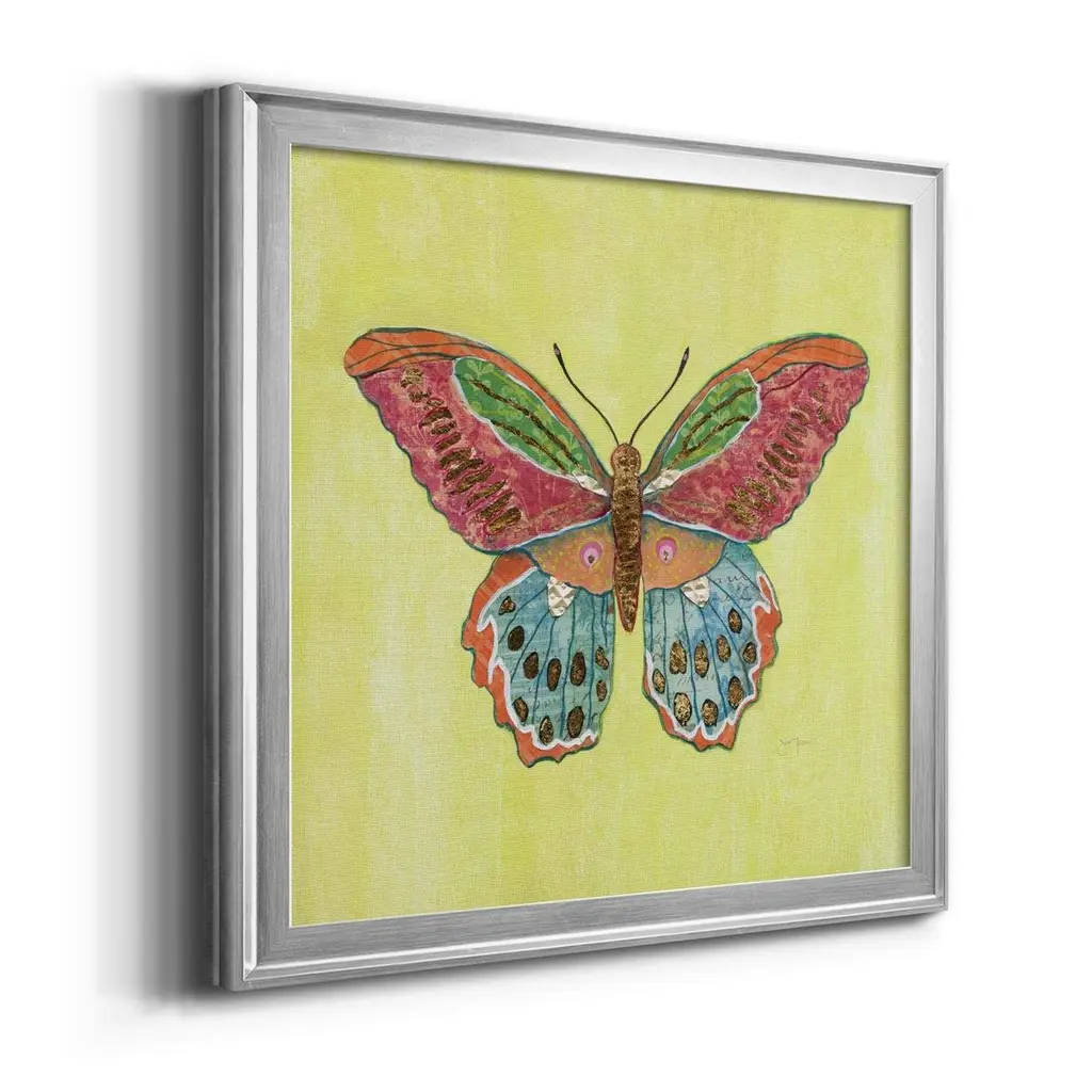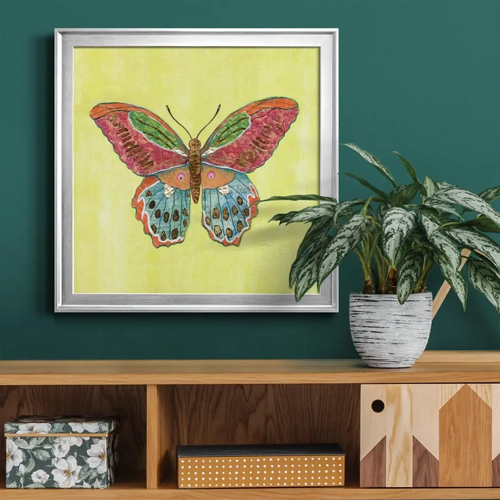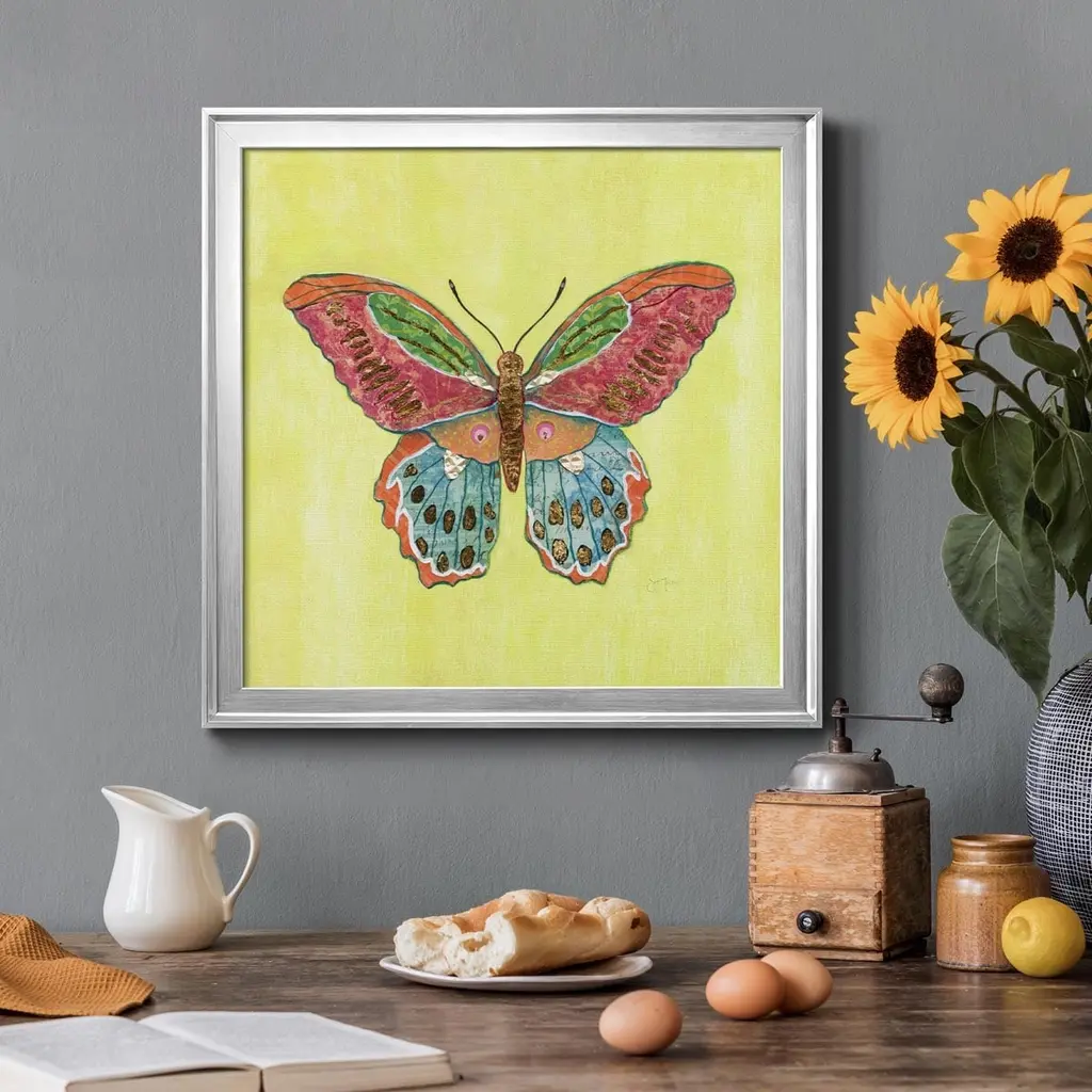 Butterfly On Green-Premium Framed Canvas - Ready To Hang - 17.5x17.5 - Silver