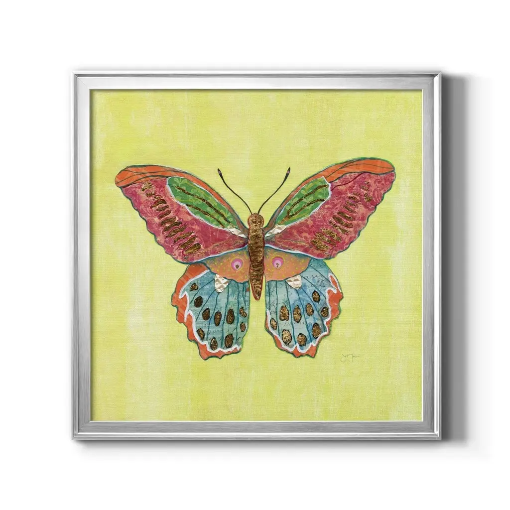 Butterfly on Green-Premium Gallery Wrapped Canvas - Ready to Hang A premium hand stretched gallery wrapped canvas print created to last. Featuring a beveled a solid wood stretcher bar, each piece comes ready to hand 5 SIZES AVAILABLE 17.5''X17.5'' - Overall Size 22.5''x22.5'' - Overall Size 26.5''x26.5'' - Overall Size 30.5''x30.5'' - Overall Size 34.5''x34.5'' - Overall Size Each piece is made to order. Built to Last Each piece comes ready to hang Solid wood stretcher Fade and Water resistant Made domestically