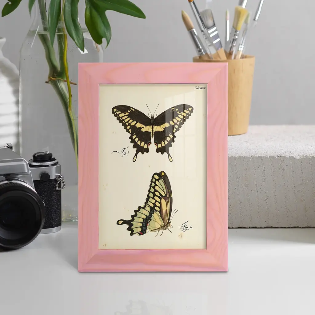 Butterfly Profile I -EZ SWITCH Framed Print w/glass-Cherry Red A delightful, framed print. Featuring a solid wood frame with real wood glass. This premium print is giclee quality. In addition, every frame features a removable back and table top stand. This allows you to change your art in the future or to just stand the art on a table for a new look. We are sure you'll enjoy our new series of EZ SWITCH Framed Art. Solid Wood Frame Real Glass Removable / Replaceable Art Built in Tabletop Stand Sizes range from 4x6 up to 12x15 - buy just one or pair them up as sets as you see fit.