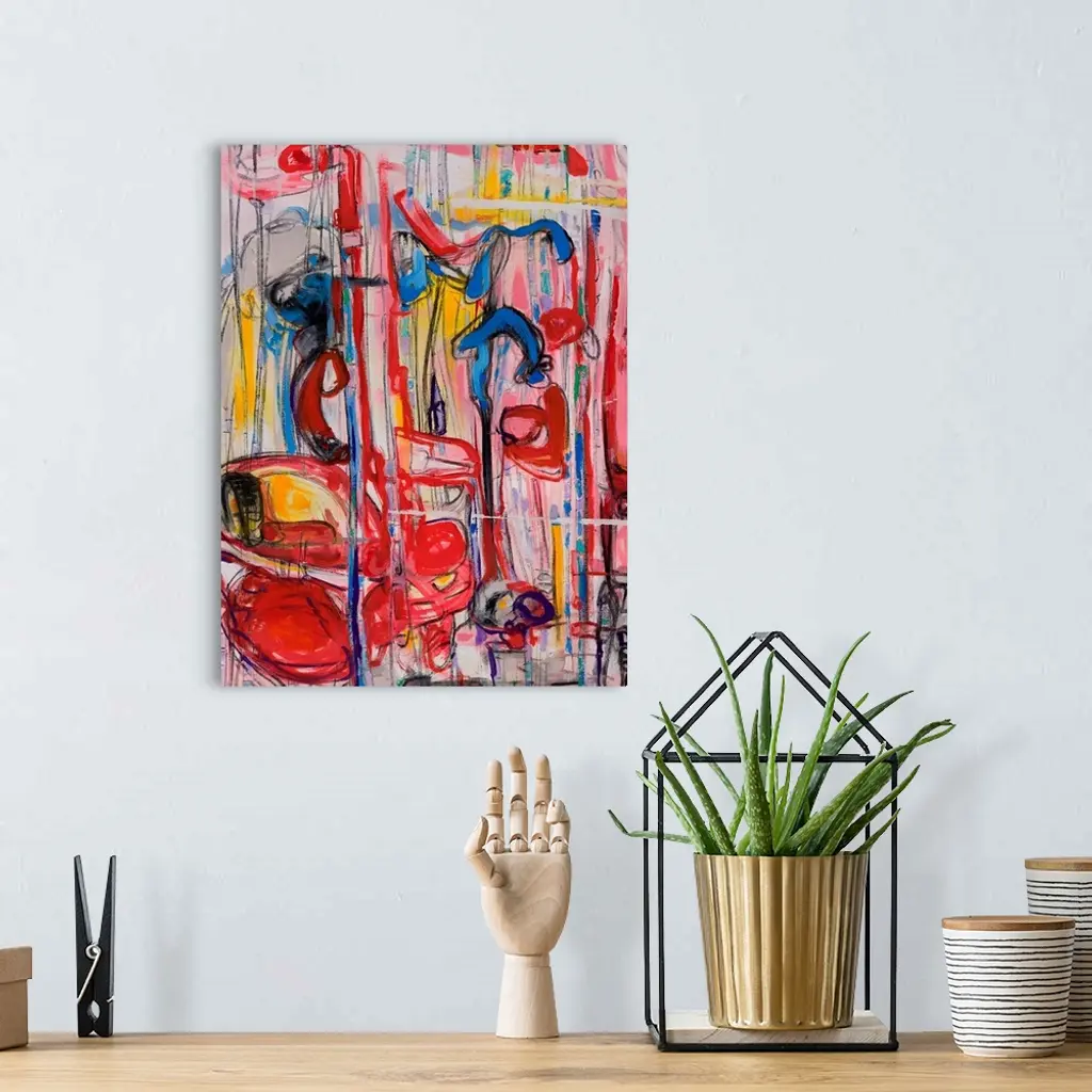 An abstract painting of a room by the bay flooded with the morning light; chair by the balcony.