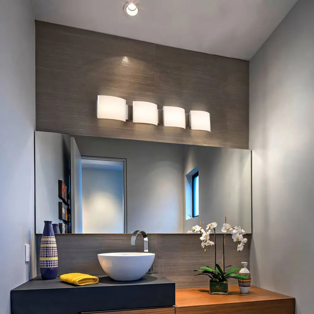 C Cattleya 4-light Satin Nickel Stainless Steel Led Vanity Light With Acrylic Shade