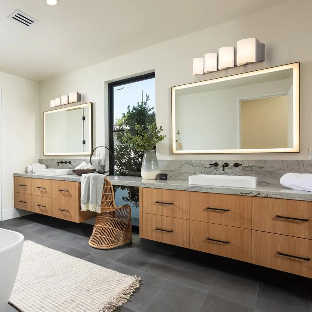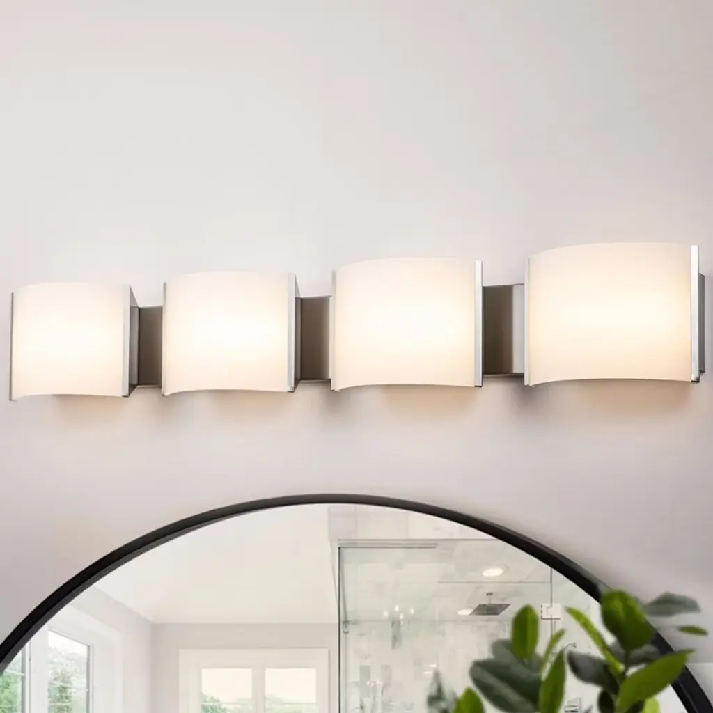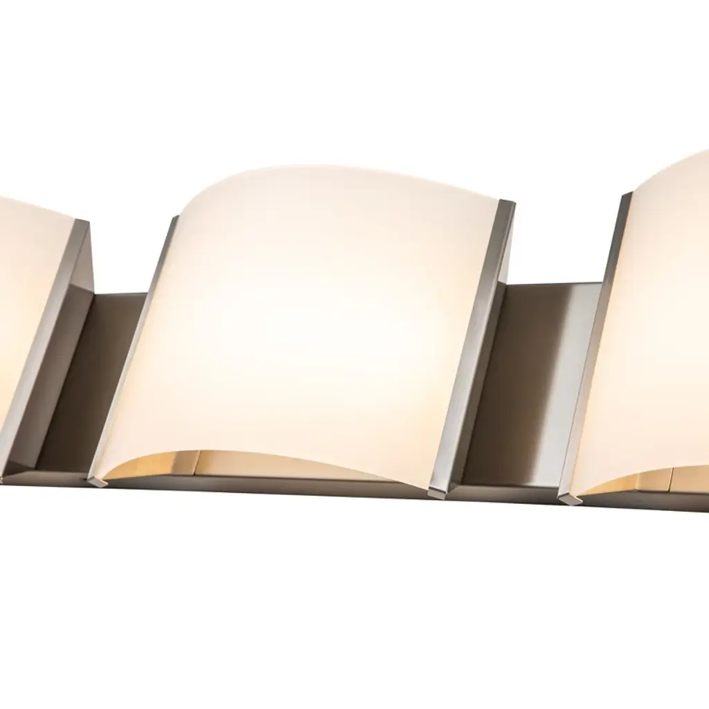 Create a whiff of modern elegance in your decor space with this vanity light, the unique and simple design is a timeless classic. Classy, white acrylic shades are aligned in a linear fashion. The shades are held in place by a durable stainless steel frame, featuring a satin nickel finish for years of care free beauty. Its geometric silhouette draws the eye to your well-appointed furniture arrangement, while its solid finish lets you lean into neutral and vibrant palettes alike. Play up this piece's transitional appeal by adding it to a crisp contemporary master bath.