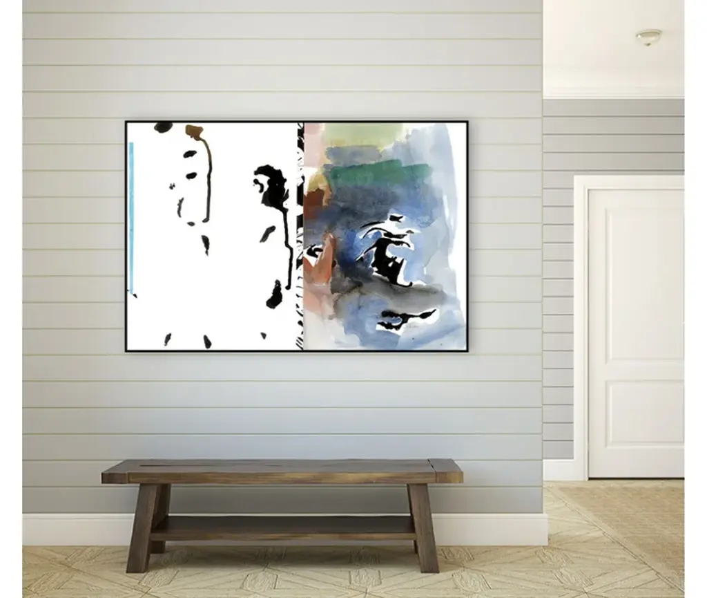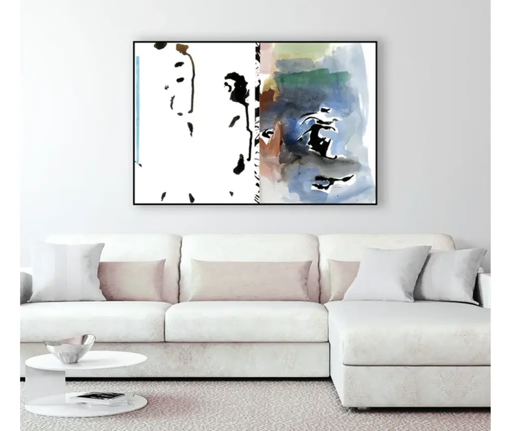 Your ready to hang artwork is printed on canvas then stretched and mounted to a 2 inch-thick, hand-stained black wood frame. Arrives at your door complete with an easy to use self-leveling hanging kit.