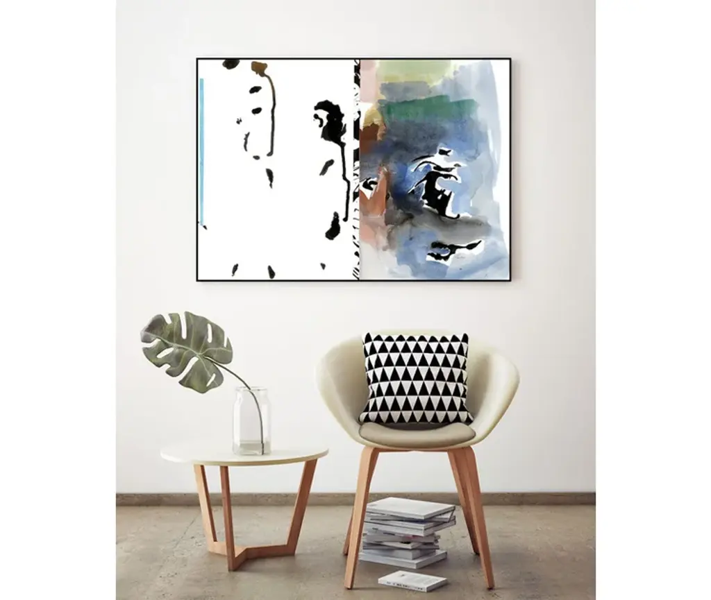 Your ready to hang artwork is printed on canvas then stretched and mounted to a 2 inch-thick, hand-stained black wood frame. Arrives at your door complete with an easy to use self-leveling hanging kit.