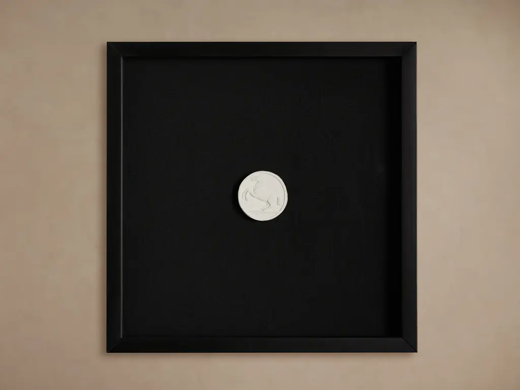 Two plaster intaglios are set inside a modern onyx-dyed wood frame to create a wall hanging that references the rich history of cameo art. With equestrian and bull imagery native to Texas ranch-life, the Caballo Framed Intaglios combine raw nature and refined living. Style alone or alongside additional artwork for a gallery-like display that is certain to start conversations.