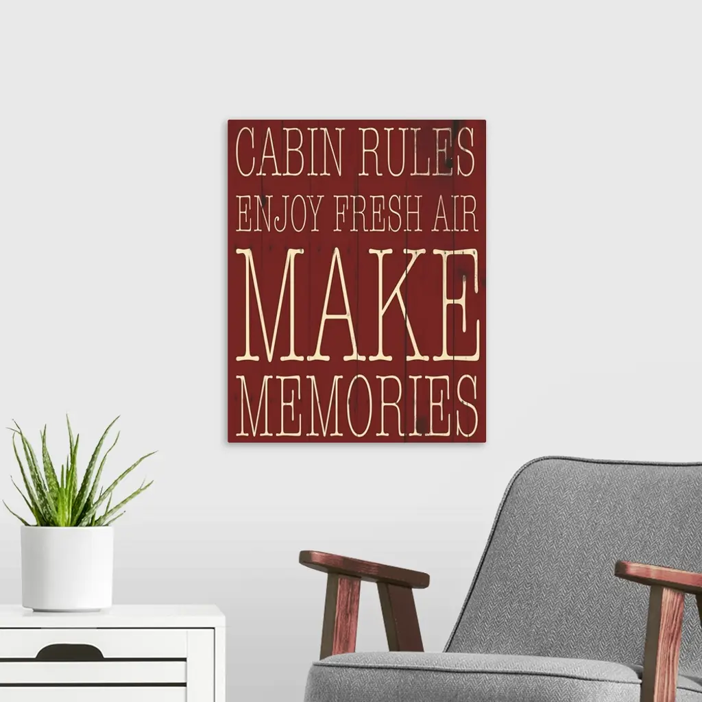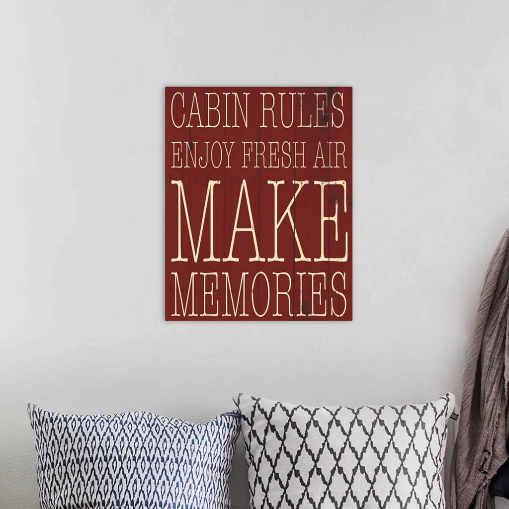 Typographical artwork with "Cabin Rules" in a thin rustic text.