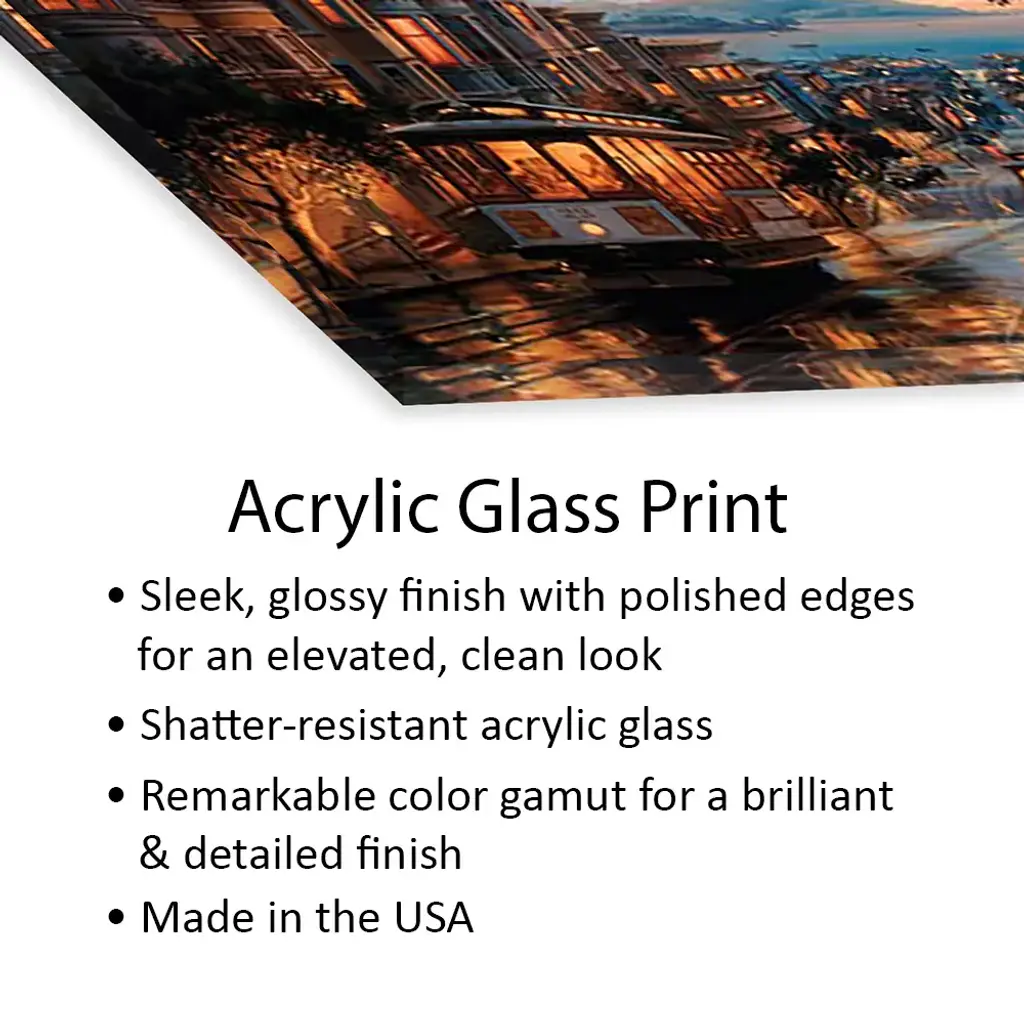 Create a visually stunning & luxurious space with this ultra-stylish acrylic art piece! Crafted in the United States, this item is made utilizing various color ink sets for a brilliant, high-definition finish. Printed directly on shatter-resistant, glossy acrylic; light is allowed to reflect through the material to create the striking effect of depth. Add brilliance in color and exceptional detail to your space with this contemporary and uncompromising art piece!
