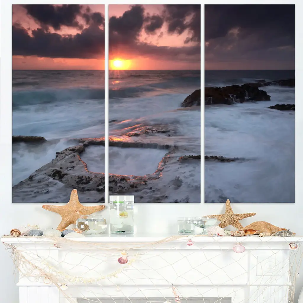 "Cable Shallow Coast Cascais Portugal" Metal Wall Art, 3 Panels, 36"x28"