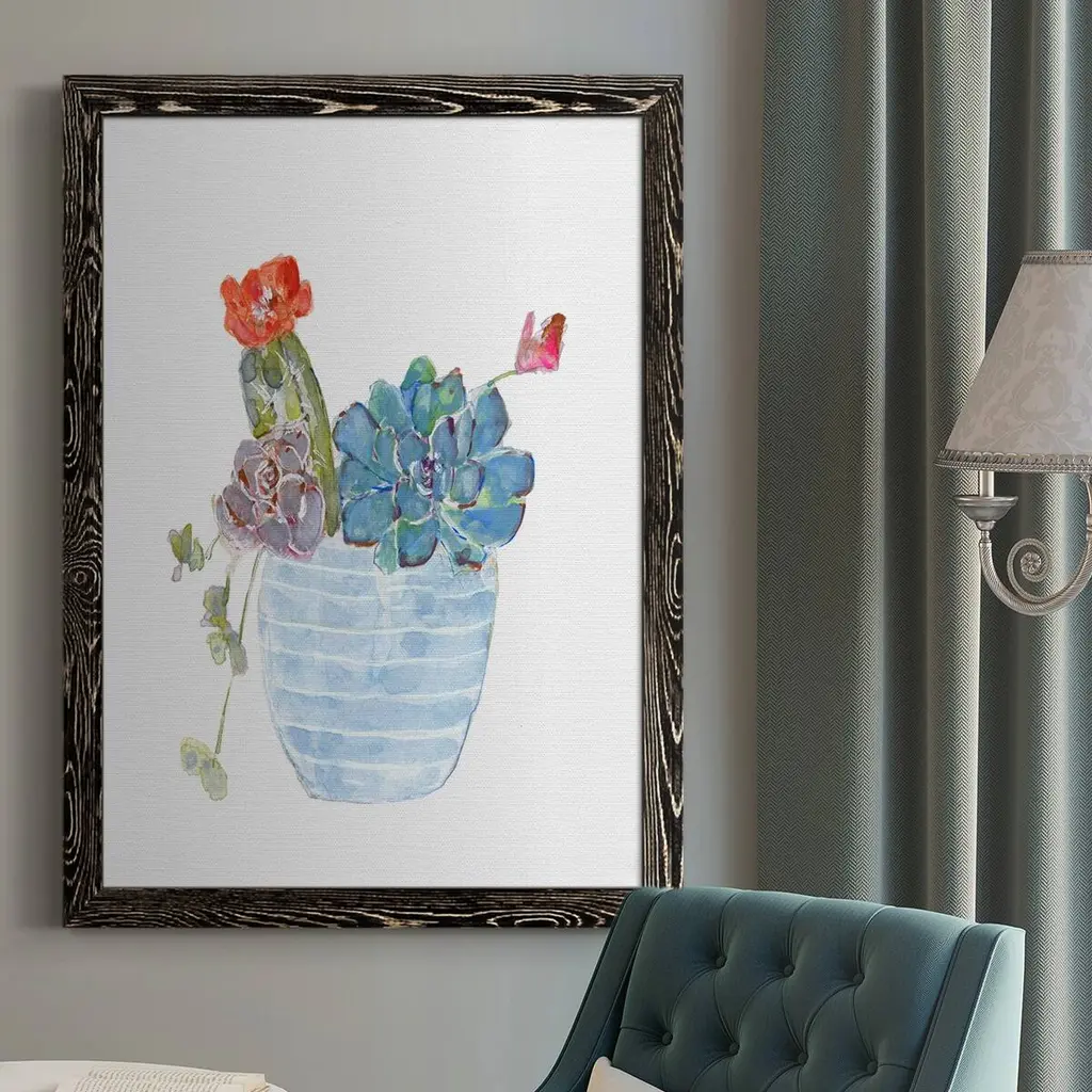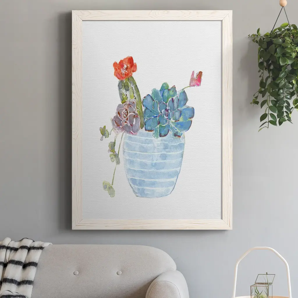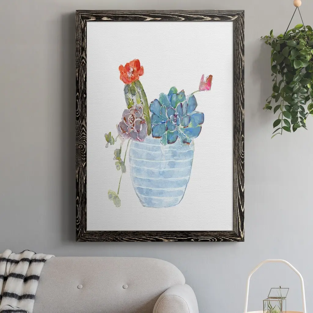 Cactus And Succulent Blooms I-Premium Framed Canvas - Ready To Hang - 27.5x37.5 - White