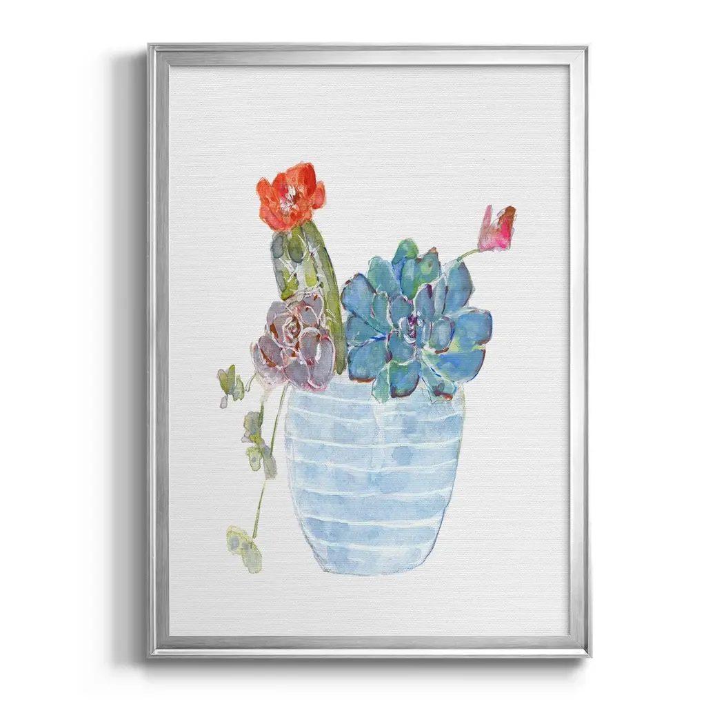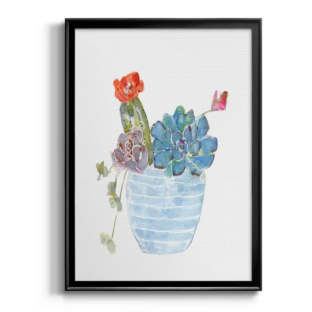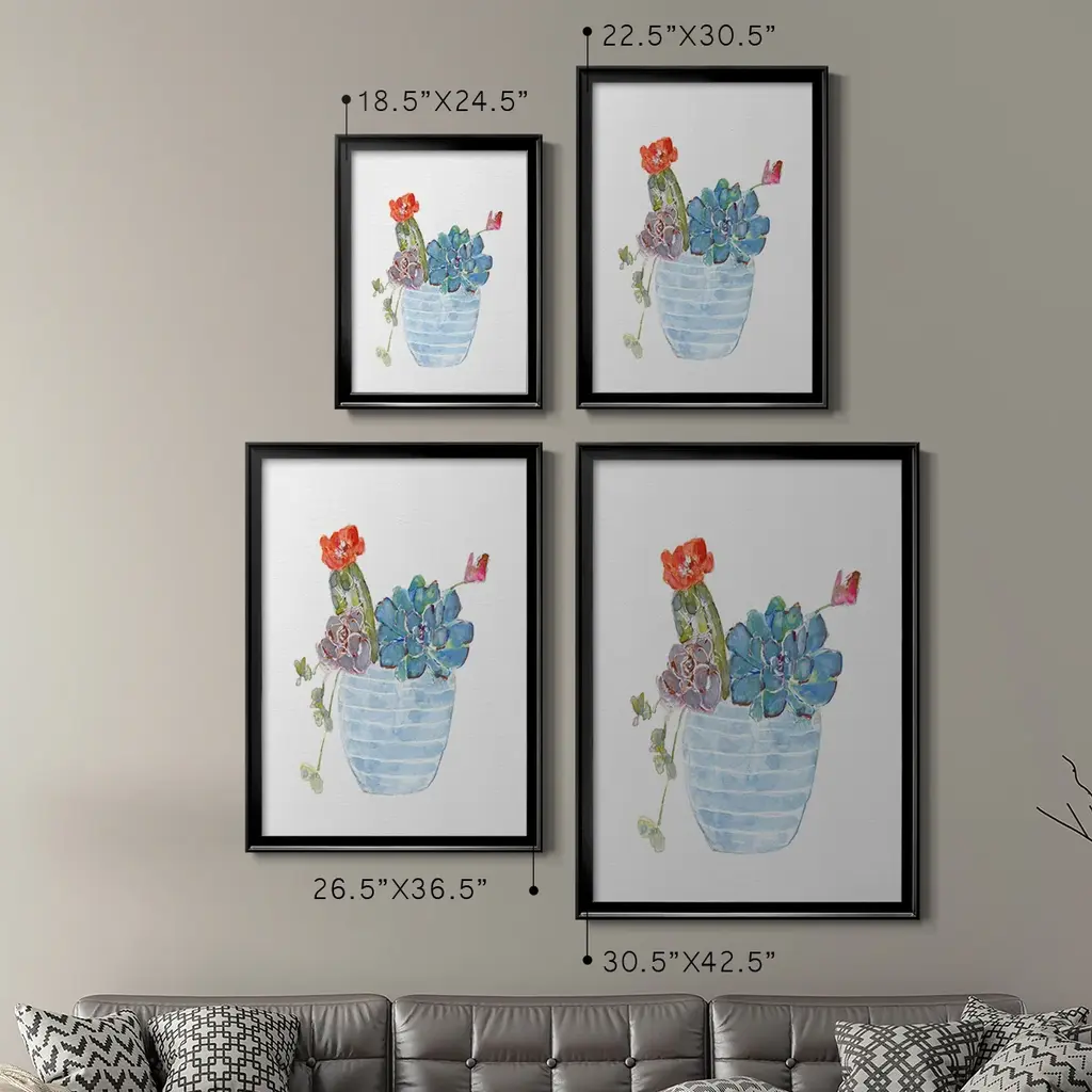 Cactus and Succulent Blooms I Premium Framed Print - Ready to Hang A Premium Framed Print created to last. Framed in distressed wood and available in an array of sizes and colors Featuring a beveled a solid wood stretcher bar, each piece comes ready to hand 4 SIZES AVAILABLE 30.5''X42.5'' - Overall Size 26.5'X36.5'' - Overall Size 22.5''x30.5'' - Overall Size 18.5''x24.5'' - Overall Size Each piece is made to order. Each piece comes with hanging hardware. Made in the USA Ready to Hang